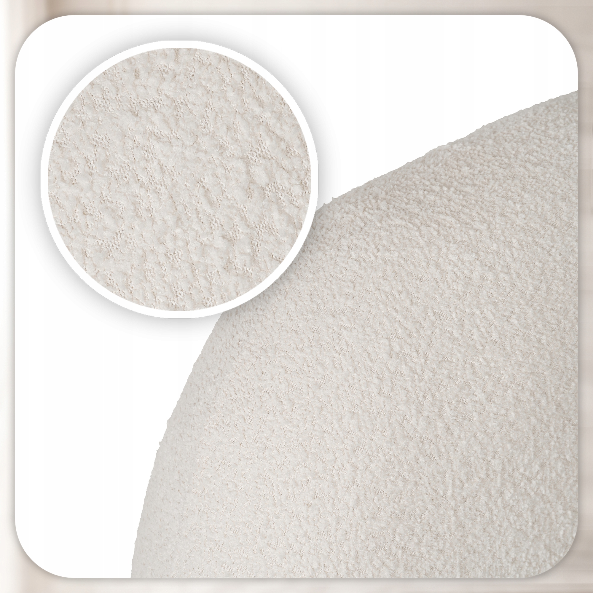 - Miękka tapicerka typu teddy w kremowym kolorze – elegancka, przyjemna w dotyku i nadająca wnętrzu wyjątkowej przytulności.