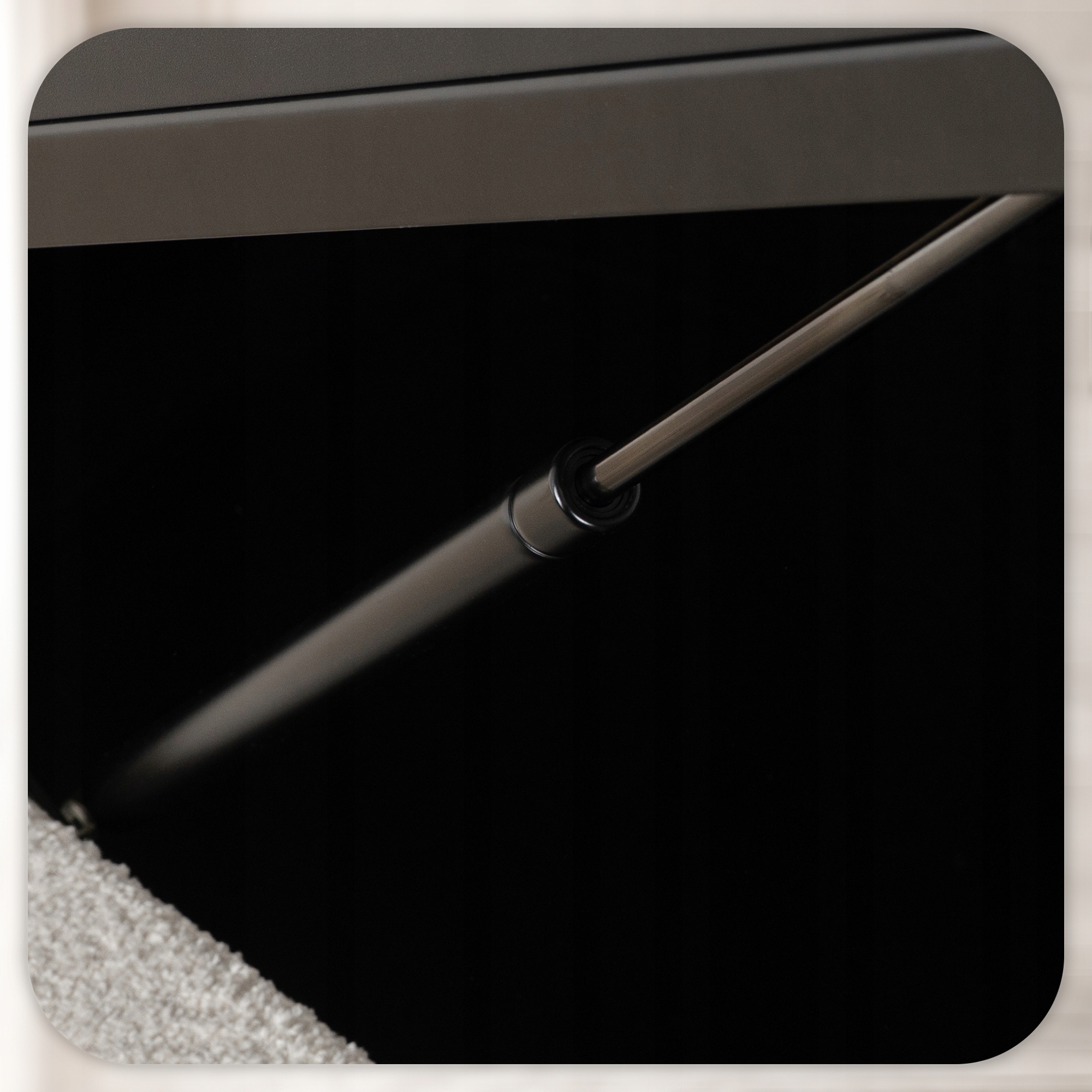 Łóżko wyposażone jest w solidne podnośniki gazowe, które sprawiają, że otwieranie pojemnika staje się bardzo proste – bez wysiłku i w kilka sekund. To rozwiązanie, które łączy funkcjonalność i komfort codziennego użytkowania.
