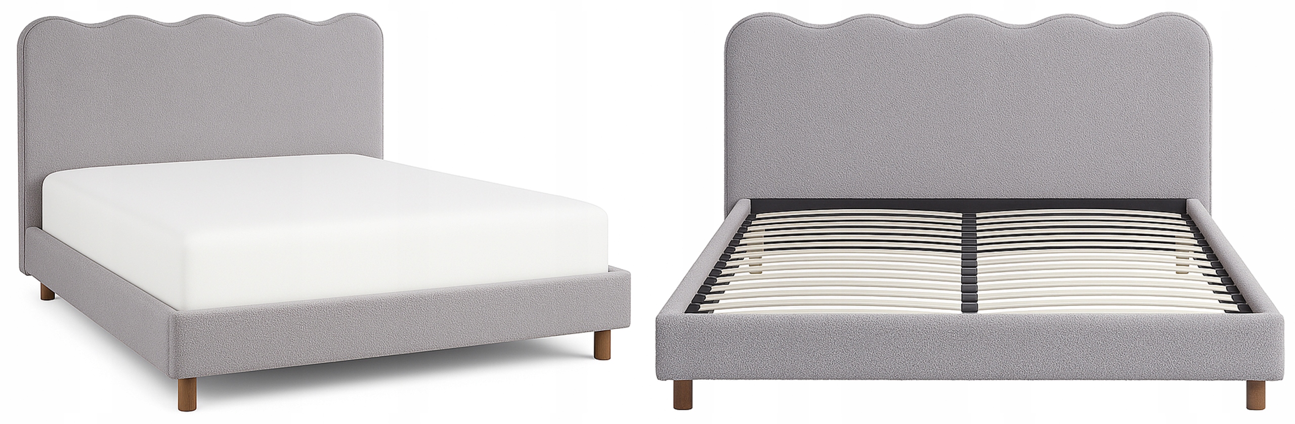 Zachwyca eleganckim szarym kolorem i miękką barankową tapicerką, która wnosi do wnętrza przytulność i styl. Idealne dla pary lub jednej osoby. To gwarancja wygody i nowoczesnego wyglądu w Twojej sypialni.