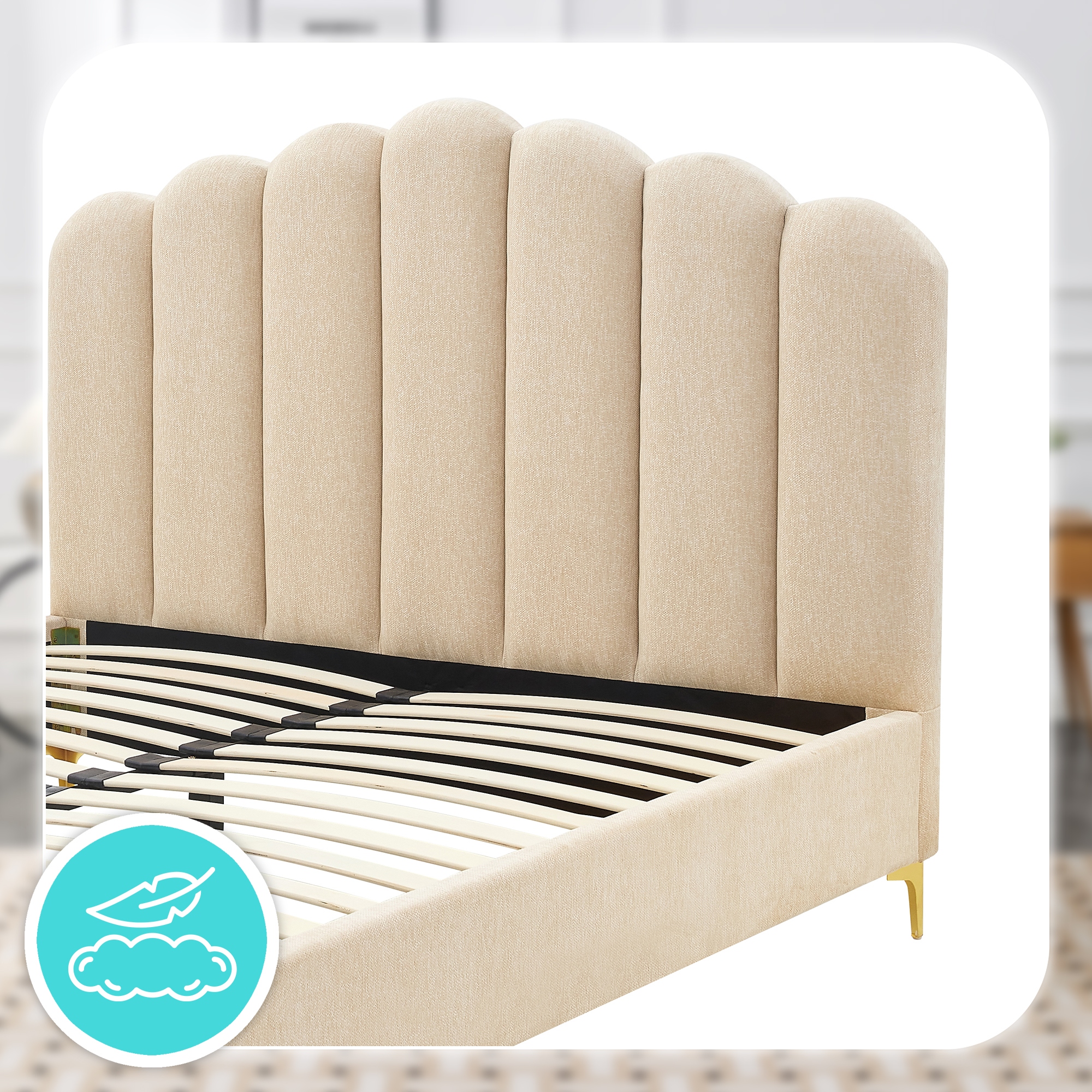 ✨ Łóżko 160x200 Tapicerowane Dwuosobowe Do Sypialni Welurowe Beżowe GEMINI