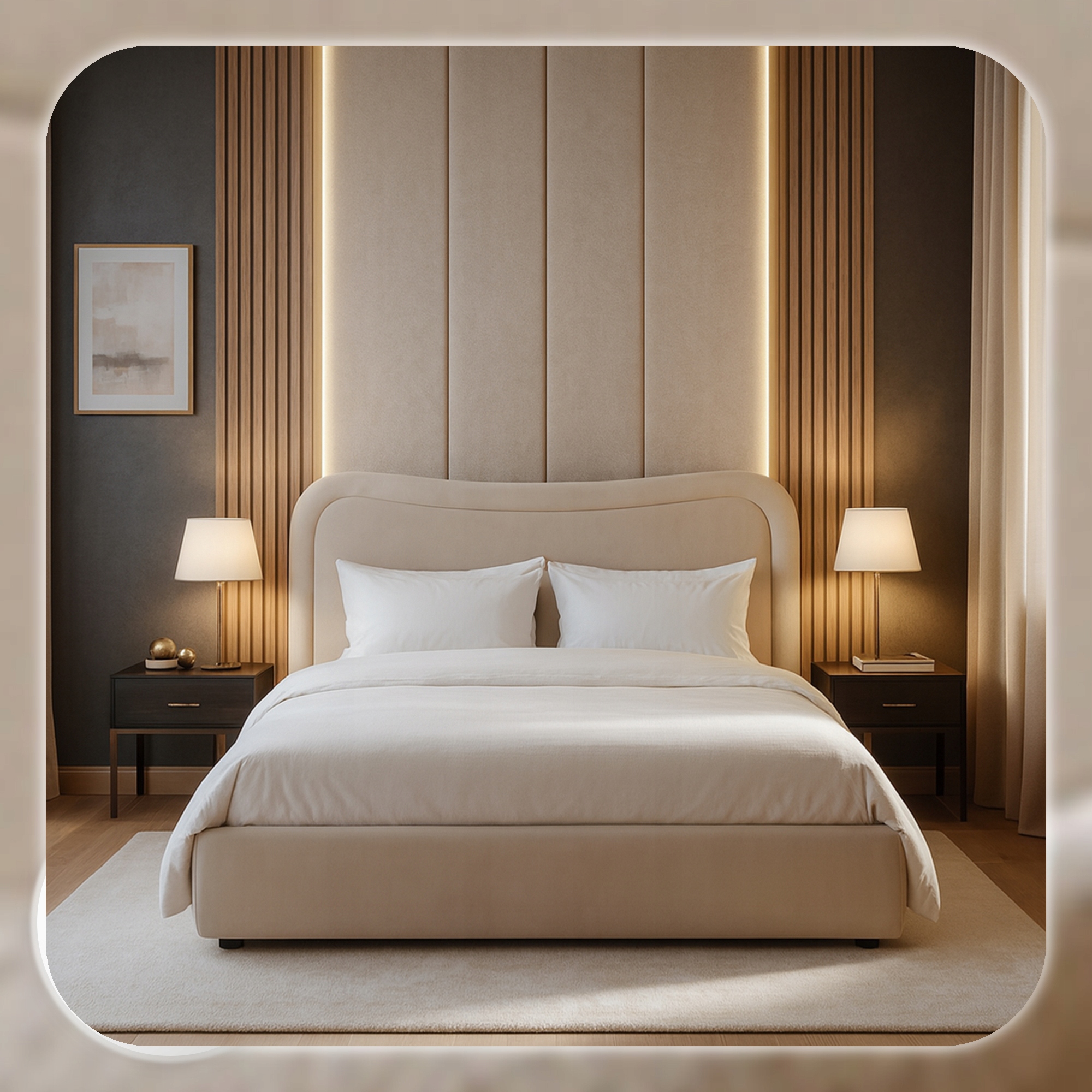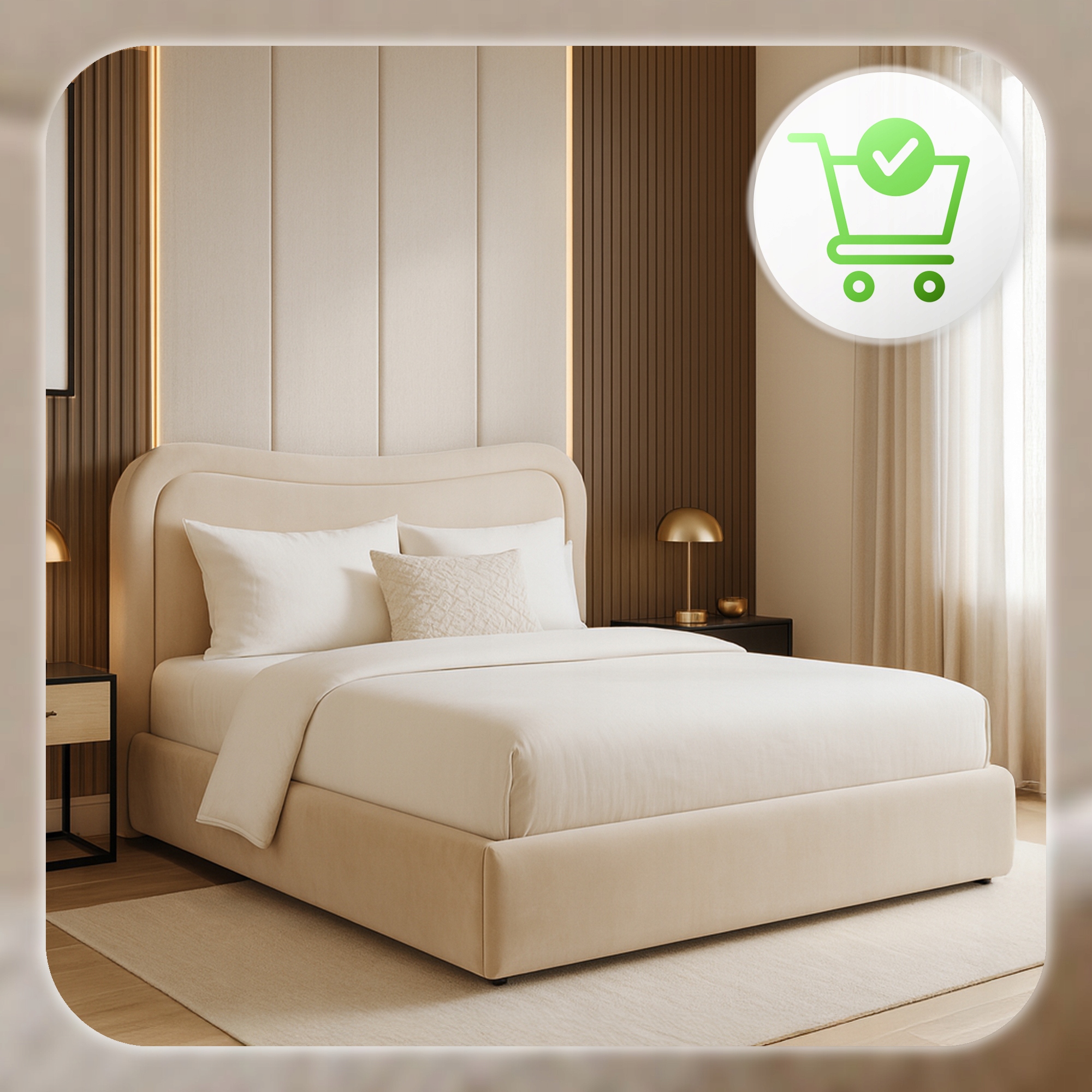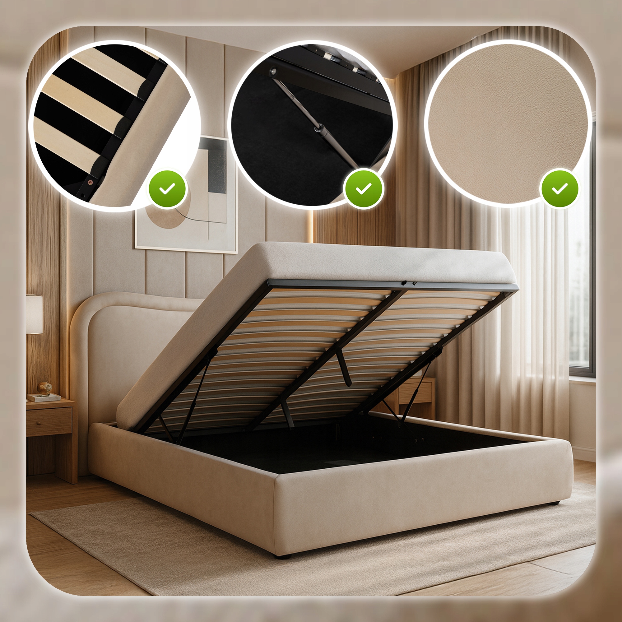Zachwyca kremowym kolorem i miękką welurową tapicerką, która wprowadza do wnętrza elegancję i przytulność. Zaokrąglony zagłówek o subtelnej linii dodaje lekkości, a pojemny schowek na pościel z solidnymi podnośnikami łączy styl z funkcjonalnością. To idealne łóżko dla tych, którzy cenią komfort, design i nowoczesny charakter sypialni.