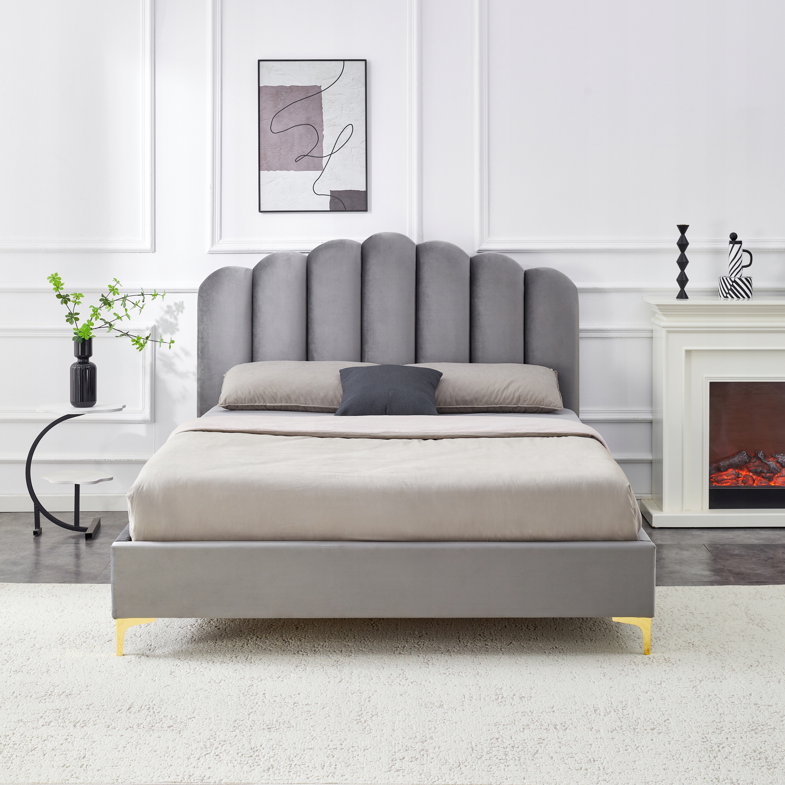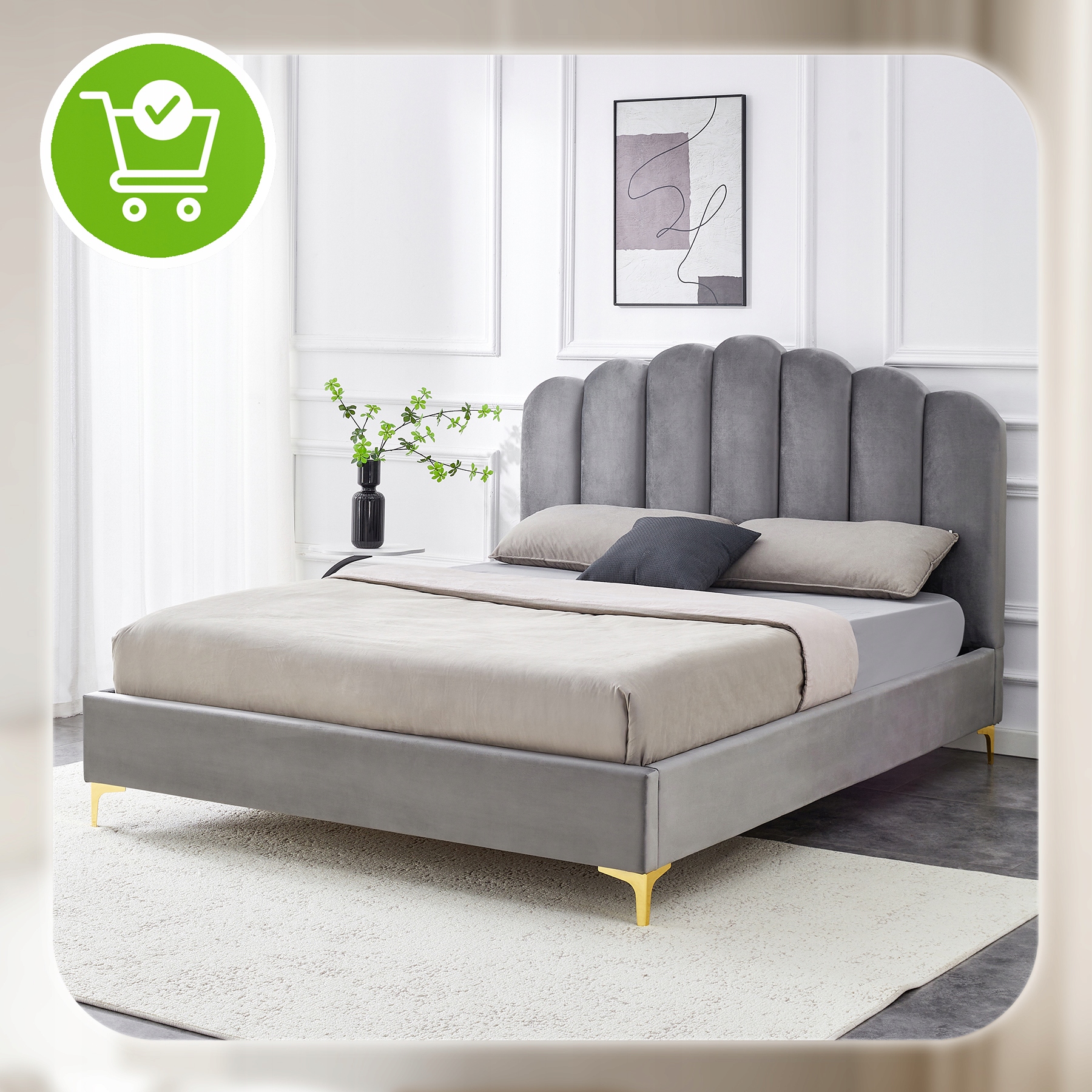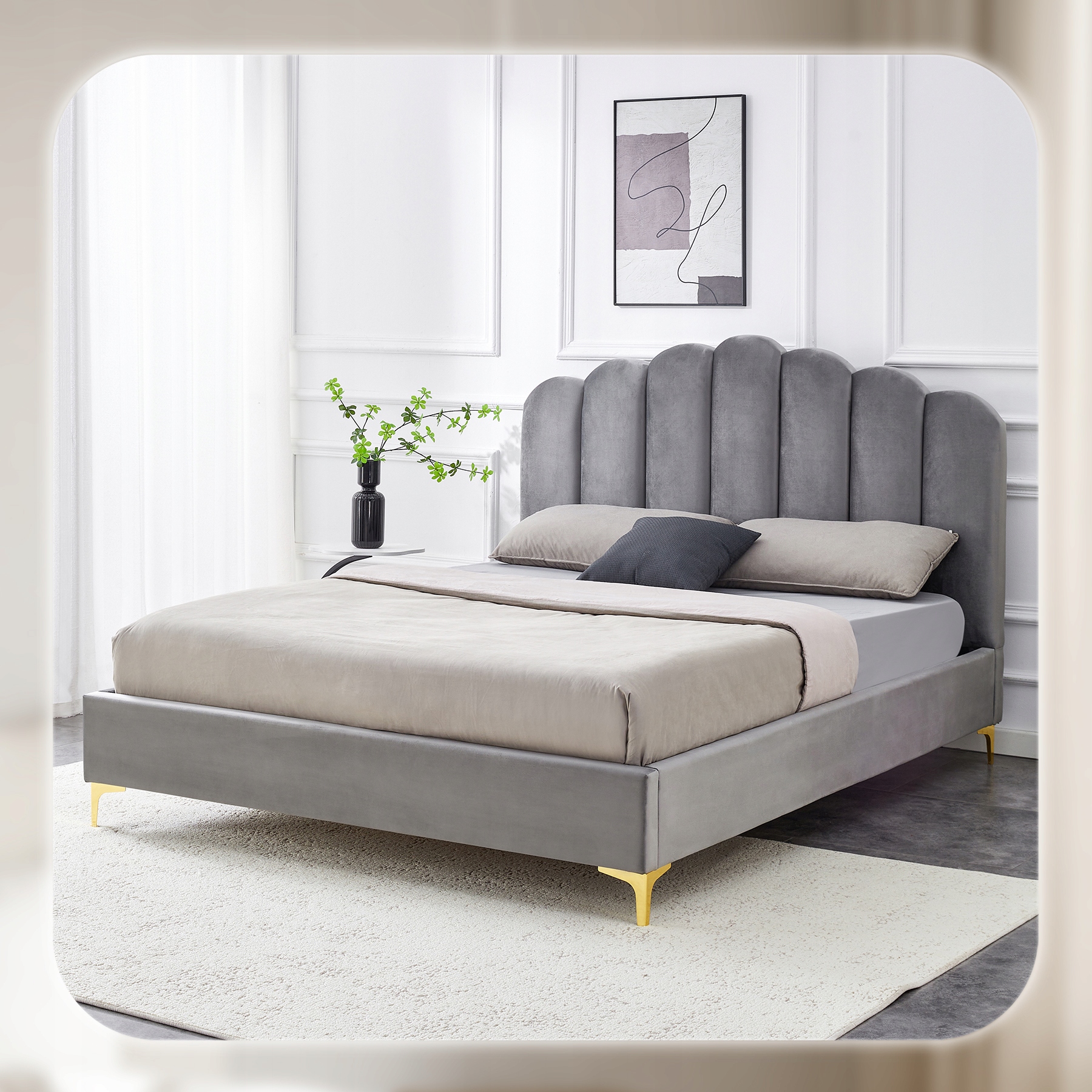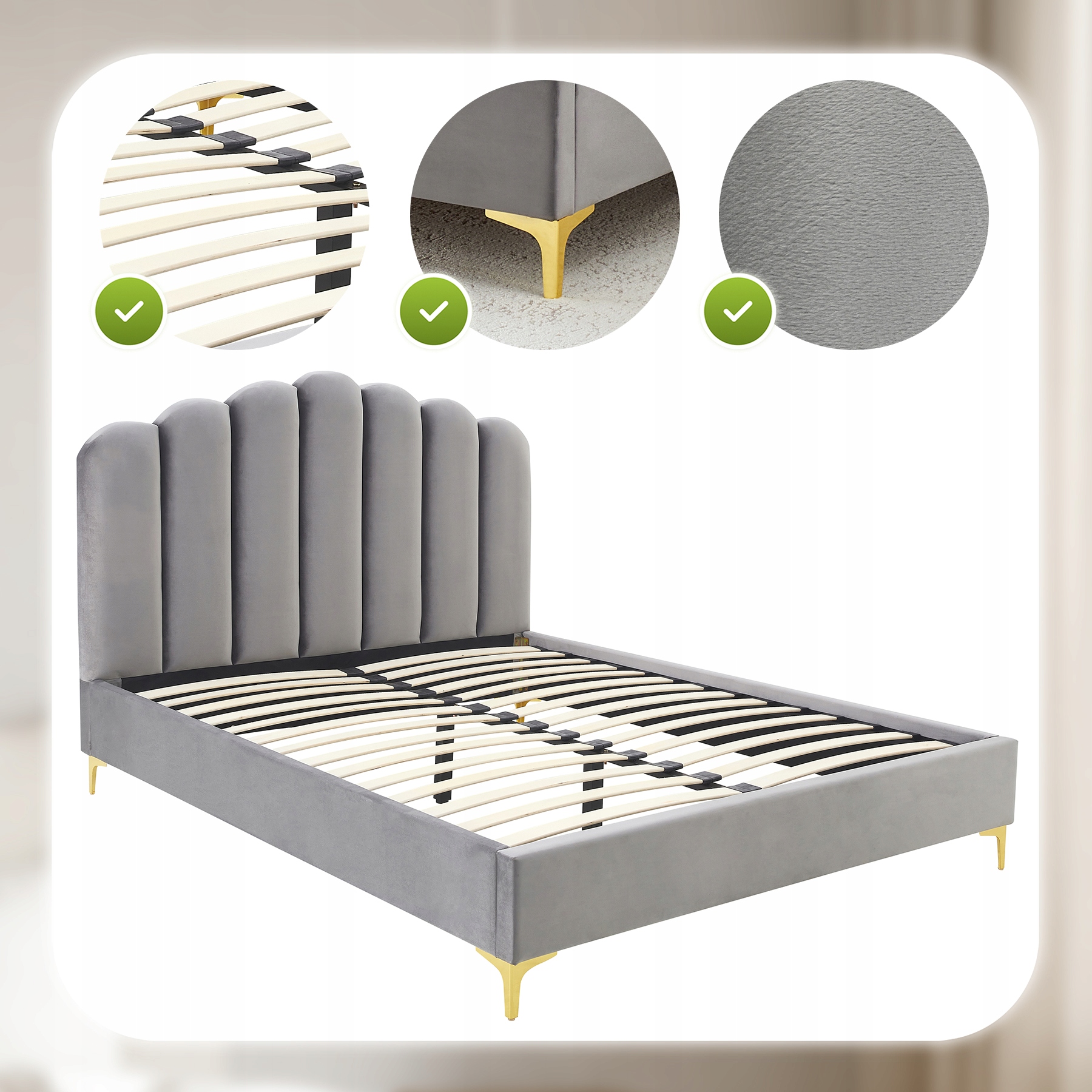 ✨ Łóżko 160x200 Tapicerowane Dwuosobowe Do Sypialni Welurowe Szary GEMINI