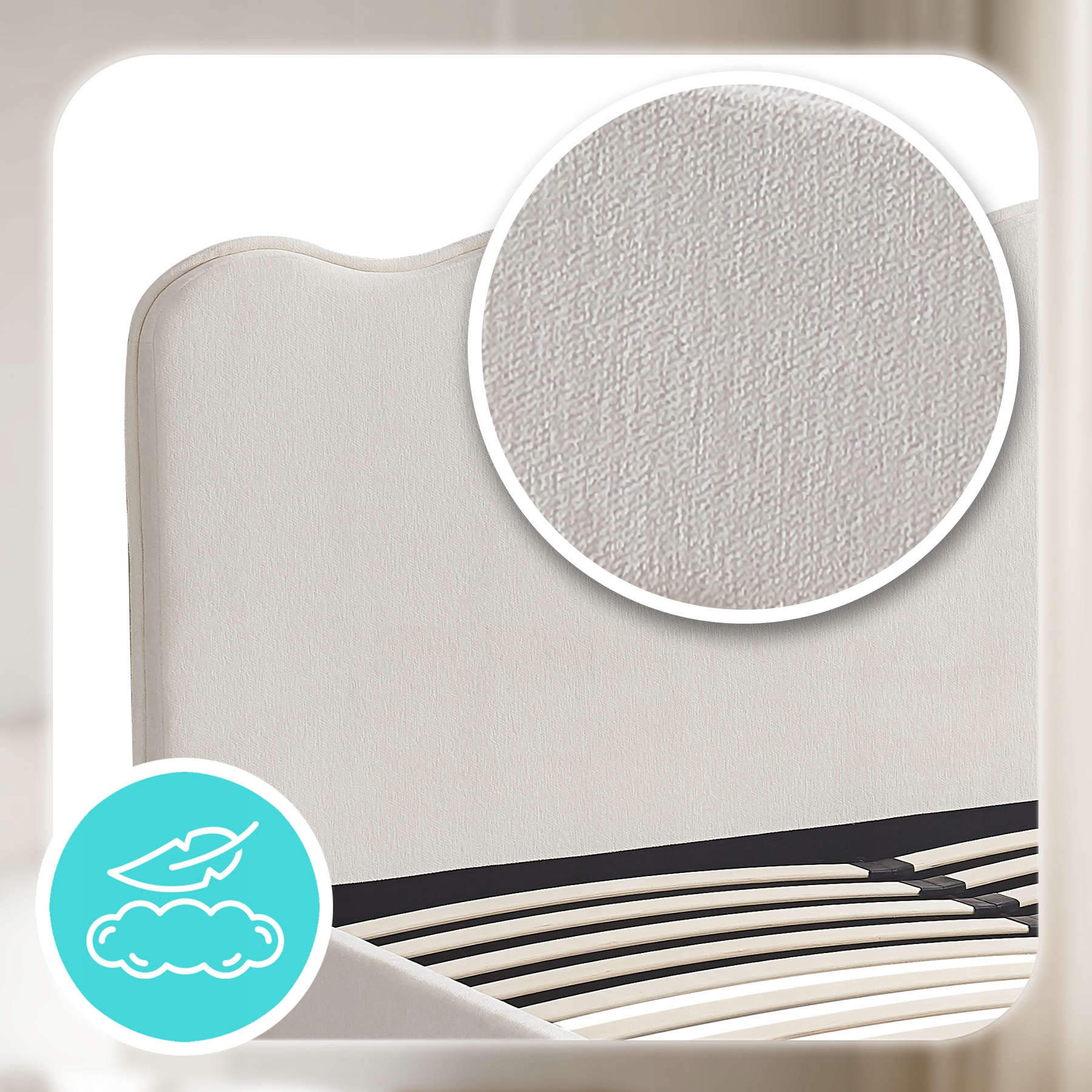 Zachwyca eleganckim kremowym kolorem i miękką tapicerką, która wnosi do wnętrza przytulność i styl. Idealne dla pary lub jednej osoby. To gwarancja wygody i nowoczesnego wyglądu w Twojej sypialni.