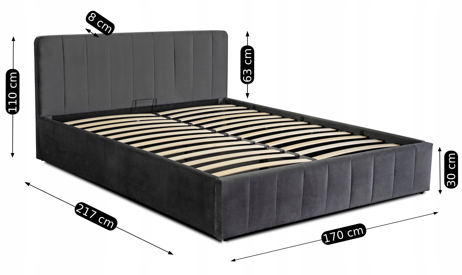 - Łóżko tapicerowane 160x200 CHRISTIAN kolor popielaty