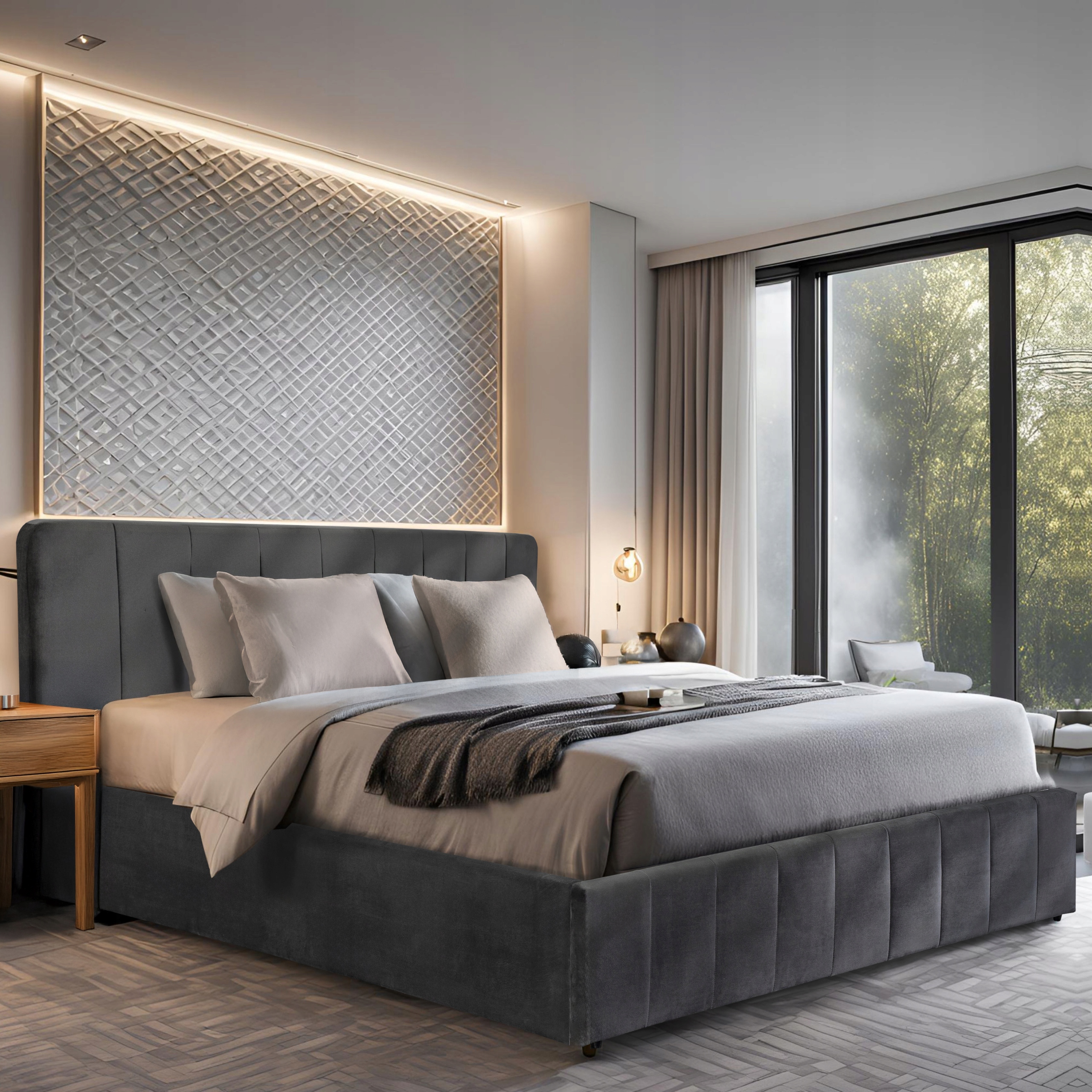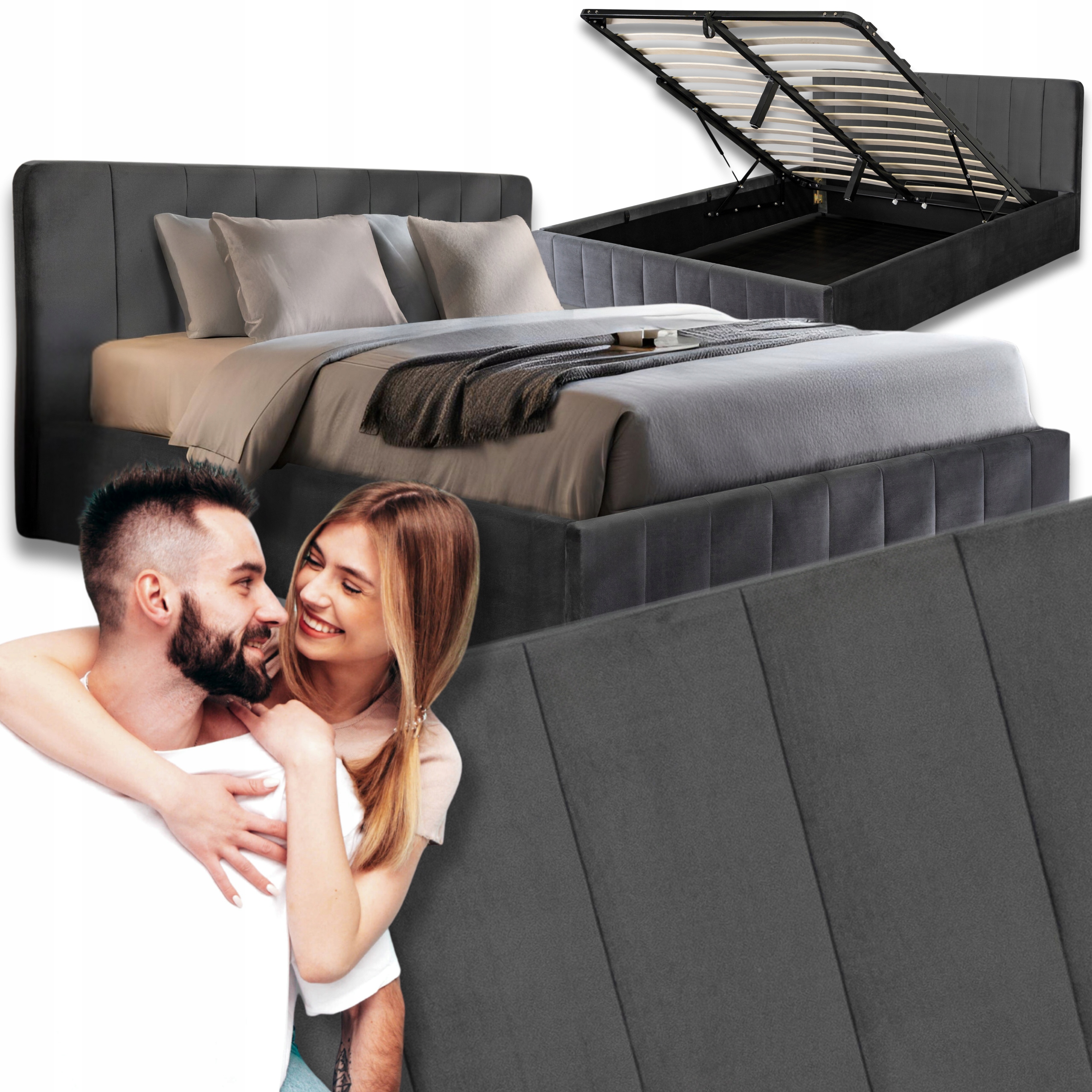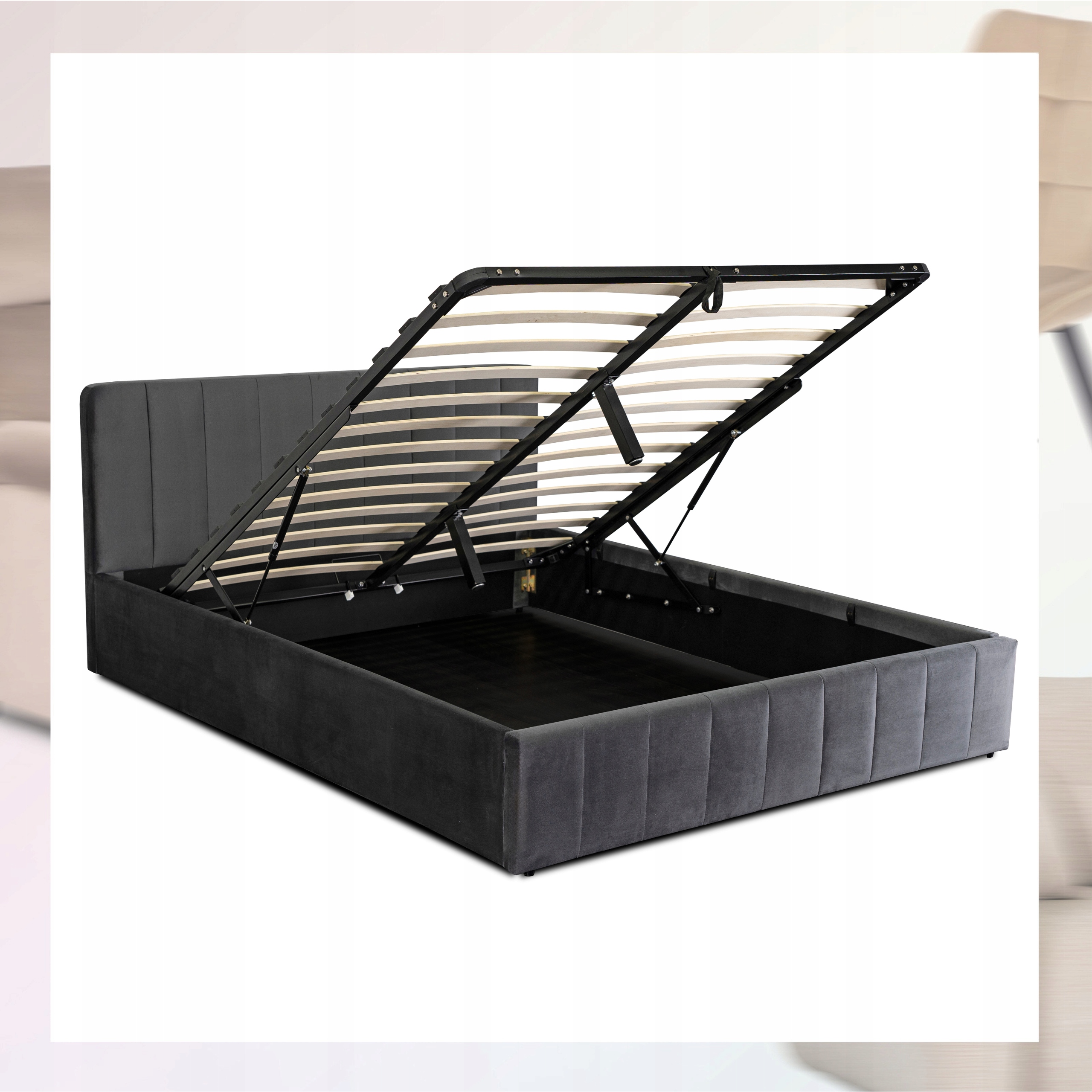 Łóżko 160x200 Tapicerowane Podwójne z Pojemnikiem Szare Welur CHRISTIAN ⭐⭐⭐⭐⭐