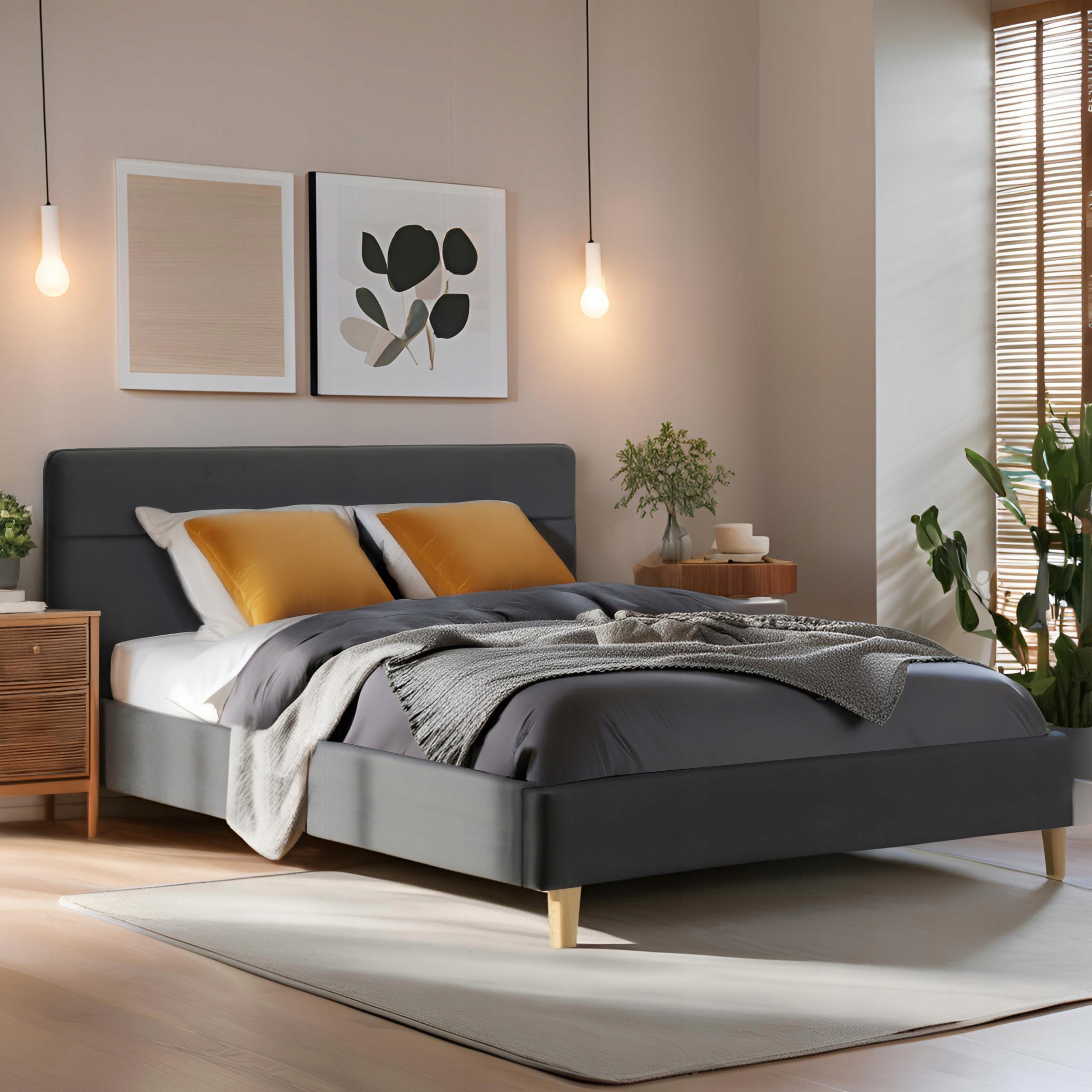 Łóżko 160x200 Tapicerowane Skandynawskie Welurowe Do Sypialni Szare NICEA ⭐⭐⭐⭐⭐