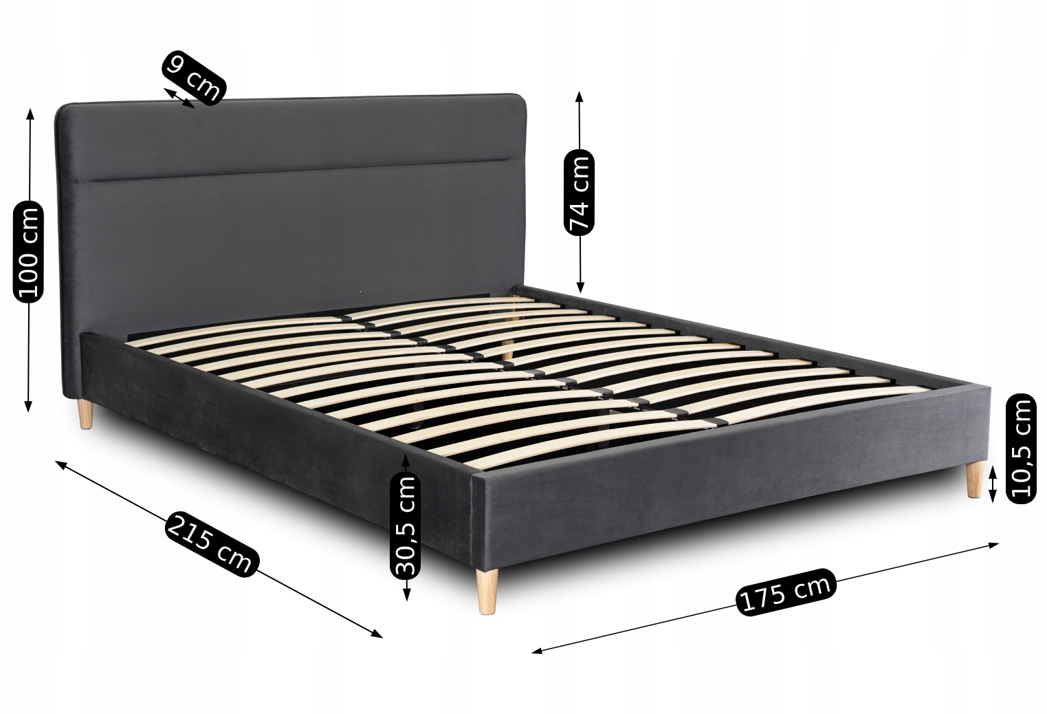 - Łóżko tapicerowane 160x200 NICEA kolor popielaty