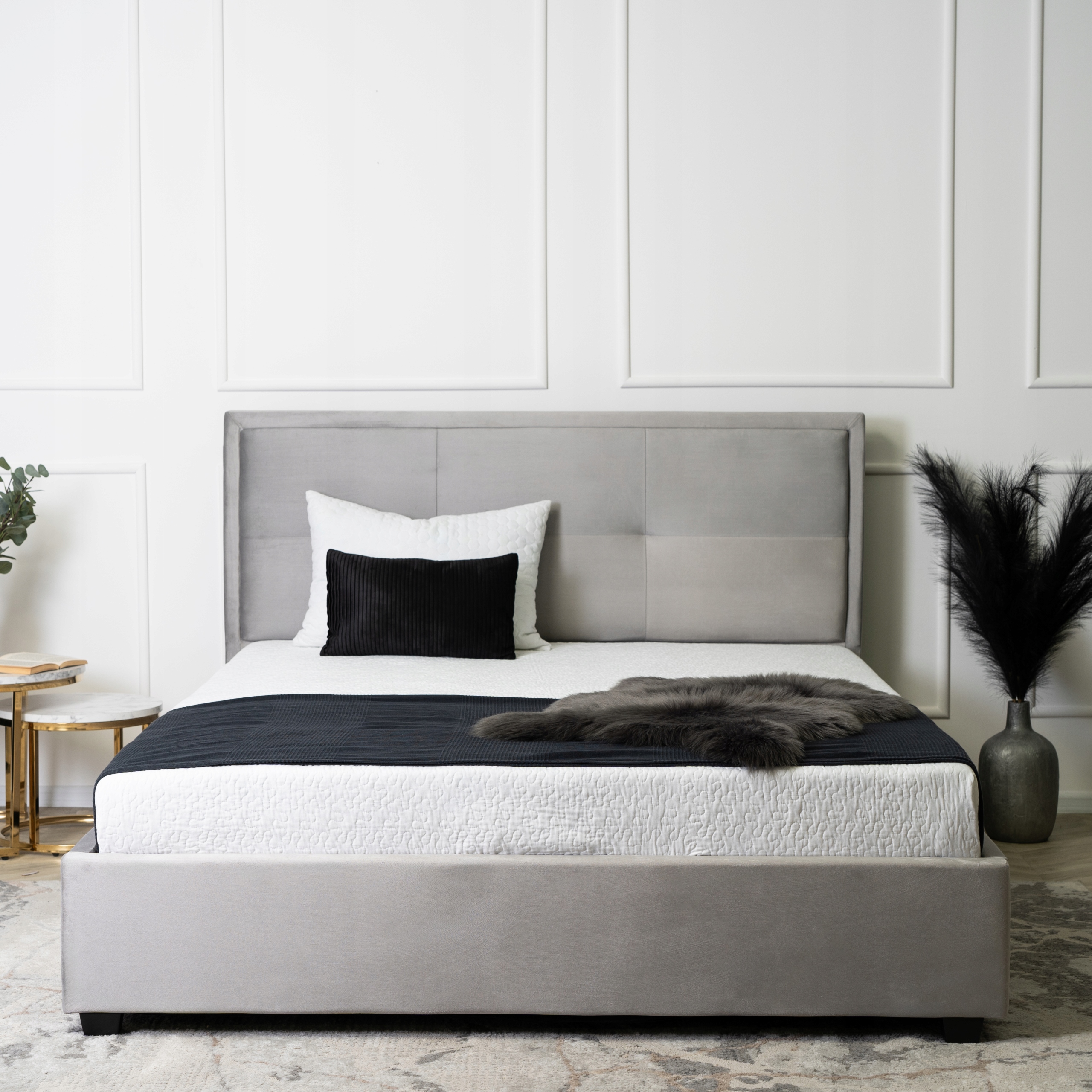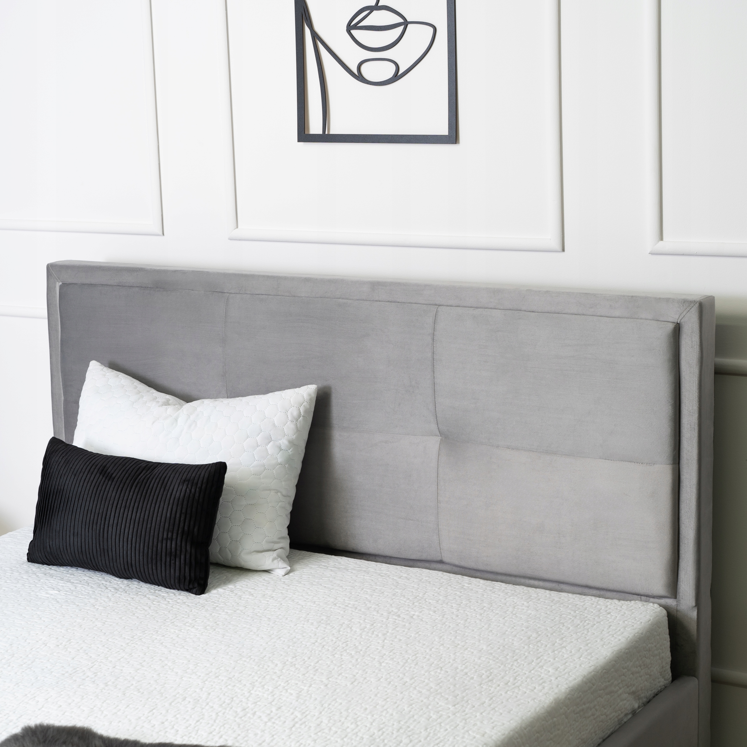 - Łóżko welurowe 160x200 dwuosobowe ANDRE w kolorze jasnopopielatym (Uwaga: łóżko jest sprzedawane bez materaca)