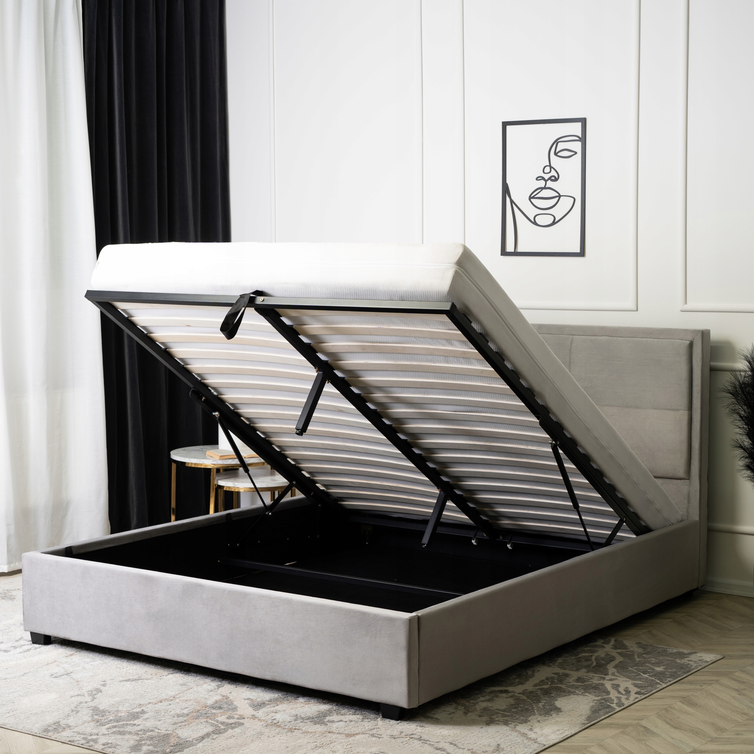Łóżko 160x200 z Pojemnikiem Podwójne Do Sypialni Loft Szare Welurowe ANDRE ⭐⭐⭐⭐⭐