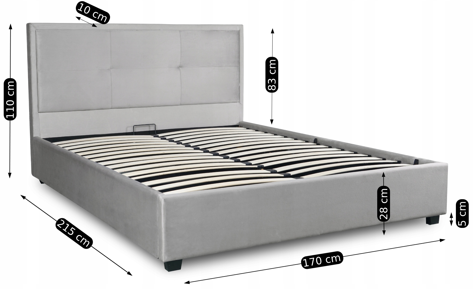 Szukasz łóżka z pojemnikiem? To łóżko jest wyposażone w elegancki i wytrzymały stelaż z podnośnikami wspomagającymi podnoszenie, dzięki czemu uzyskujesz pojemne miejsce do swojej dyspozycji, a jego podniesienie pojemnika nie wymaga dużego nakładu siły.