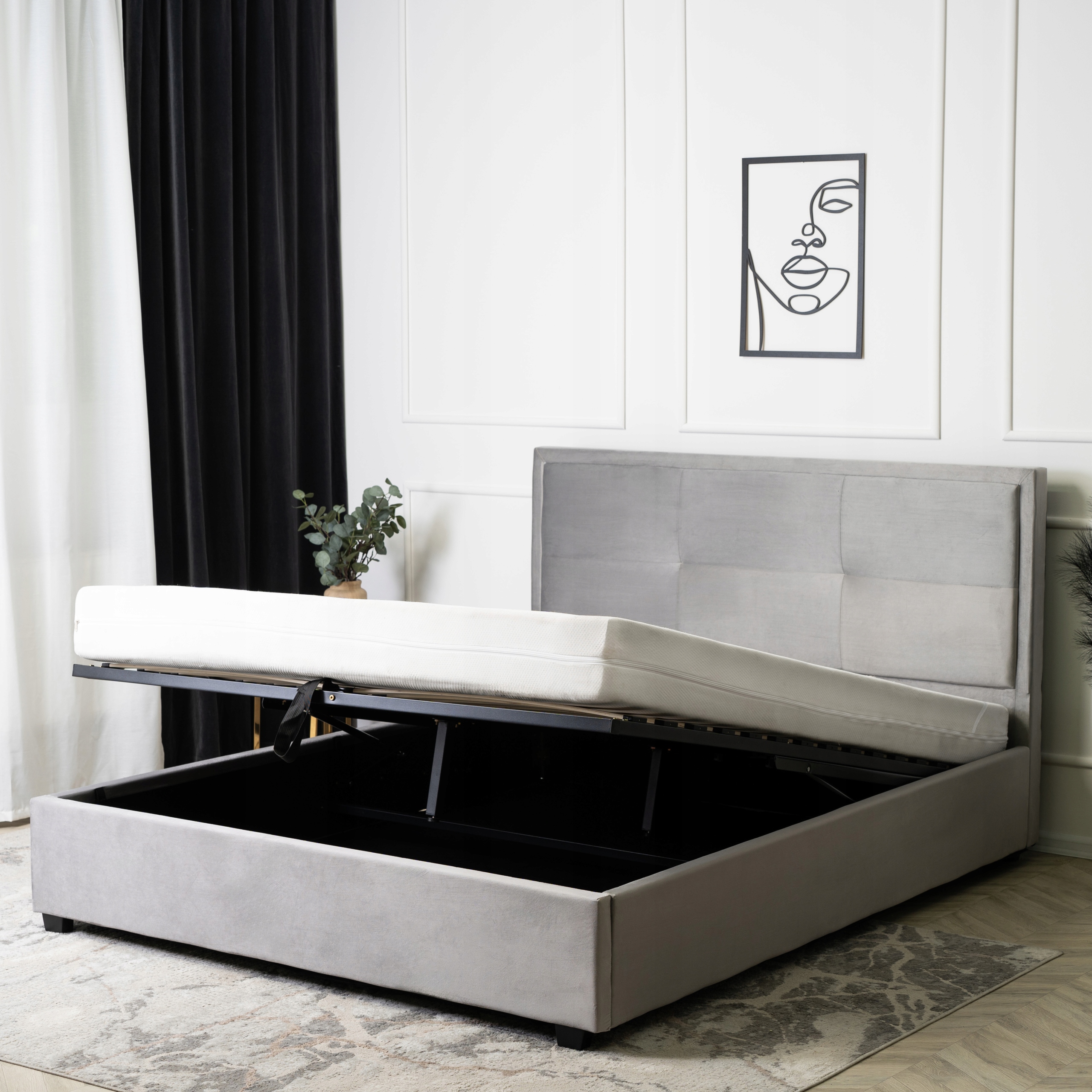 ⭐ Pojemnik na pościel - podnosząc stelaż do góry otrzymasz dostęp do pojemnej wnęki, w której możesz przechowywać pościel, poduszki, koce itp. Wnętrze pojemnika jest tapicerowane.