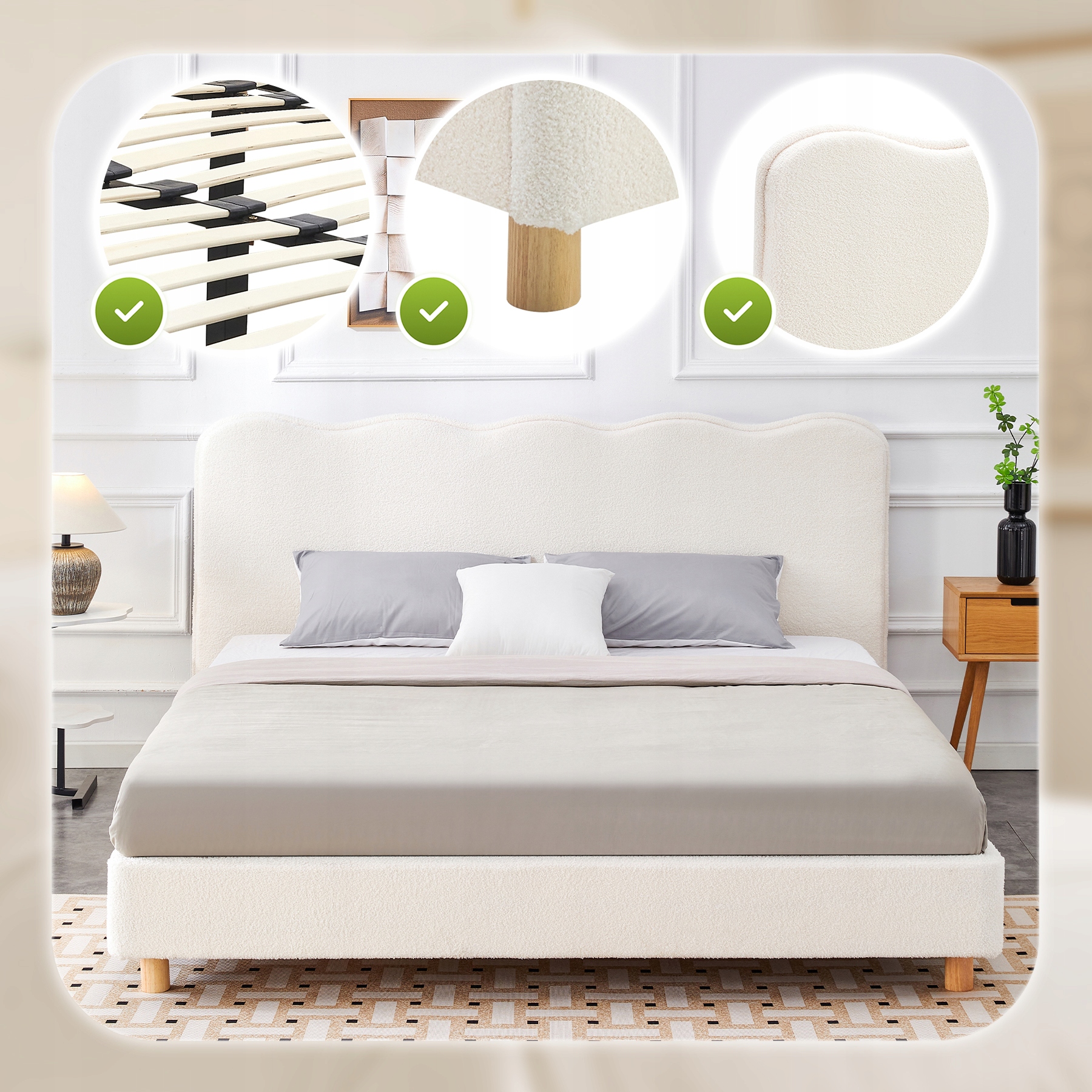 ✨ Łóżko 180x200 Tapicerowane Dwuosobowe Do Sypialni Baranek Krem IZMIR