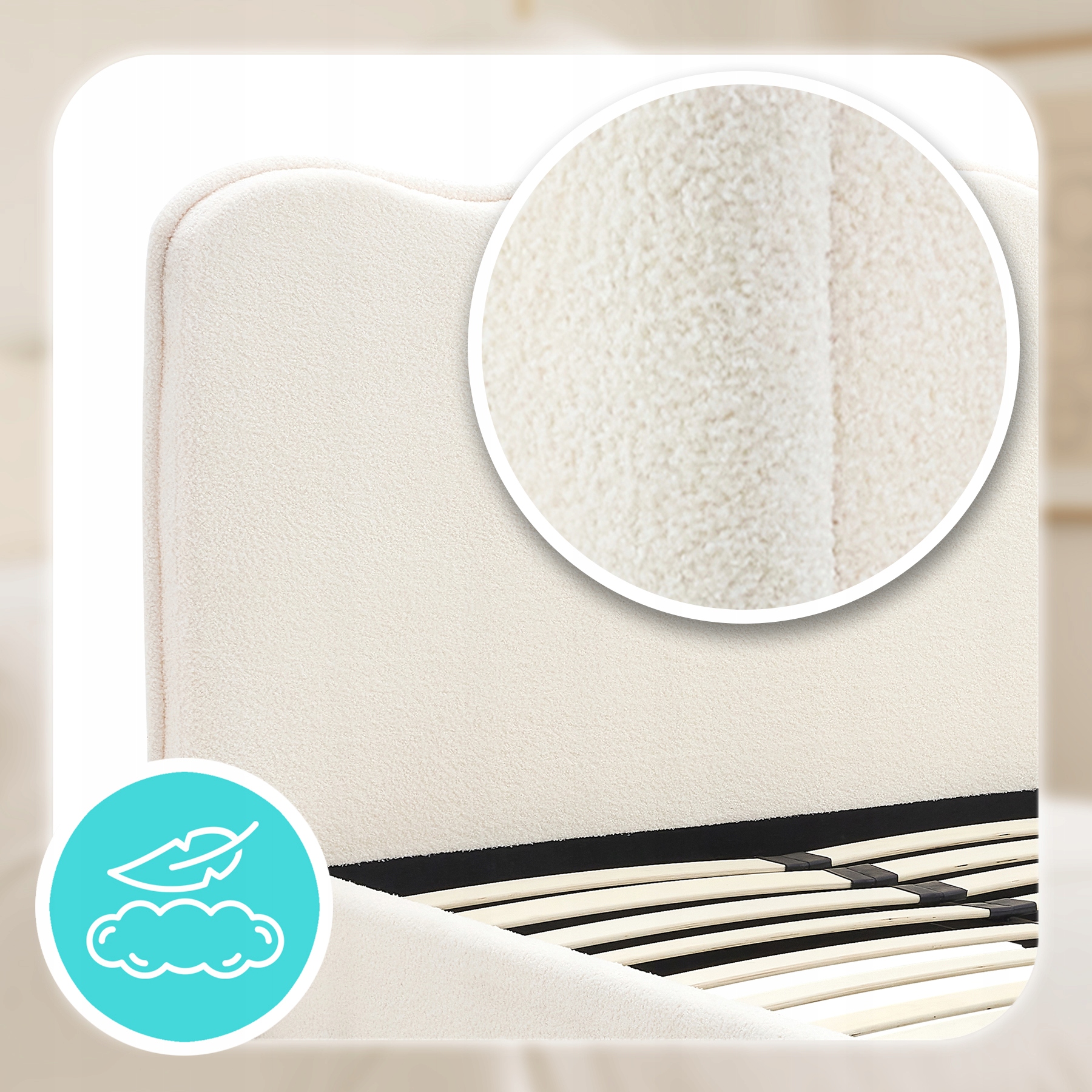 Łóżko tapicerowane jest tkaniną typu teddy (baranek) – niezwykle miękką, przyjemną w dotyku i odporną na codzienne użytkowanie.