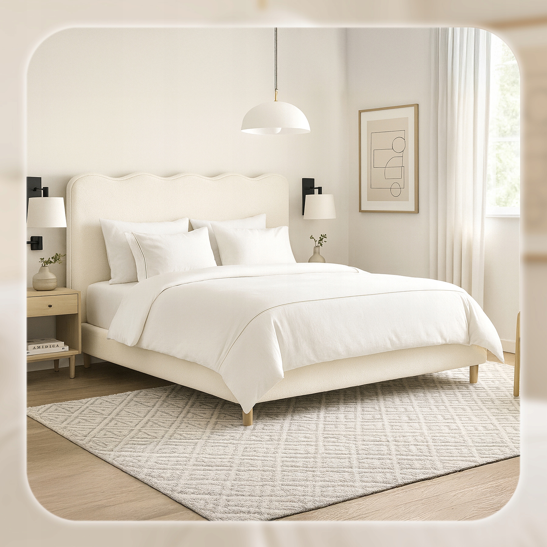 Zachwyca eleganckim kremowym kolorem i miękką barankową tapicerką, która wnosi do wnętrza przytulność i styl. Idealne dla pary lub jednej osoby. To gwarancja wygody i nowoczesnego wyglądu w Twojej sypialni.