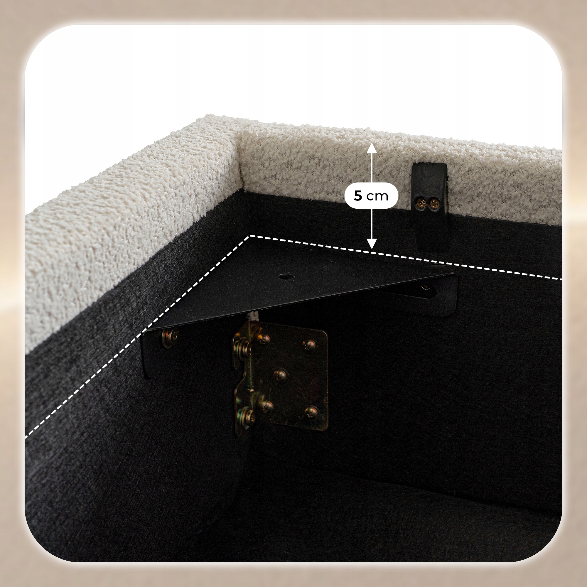 Zachwyca eleganckim kremowym kolorem i miękką barankową tapicerką, która wnosi do wnętrza przytulność i styl. Dzięki praktycznemu pojemnikowi na pościel z solidnymi podnośnikami, łączy w sobie design i funkcjonalność. To gwarancja wygody i nowoczesnego wyglądu w Twojej sypialni.