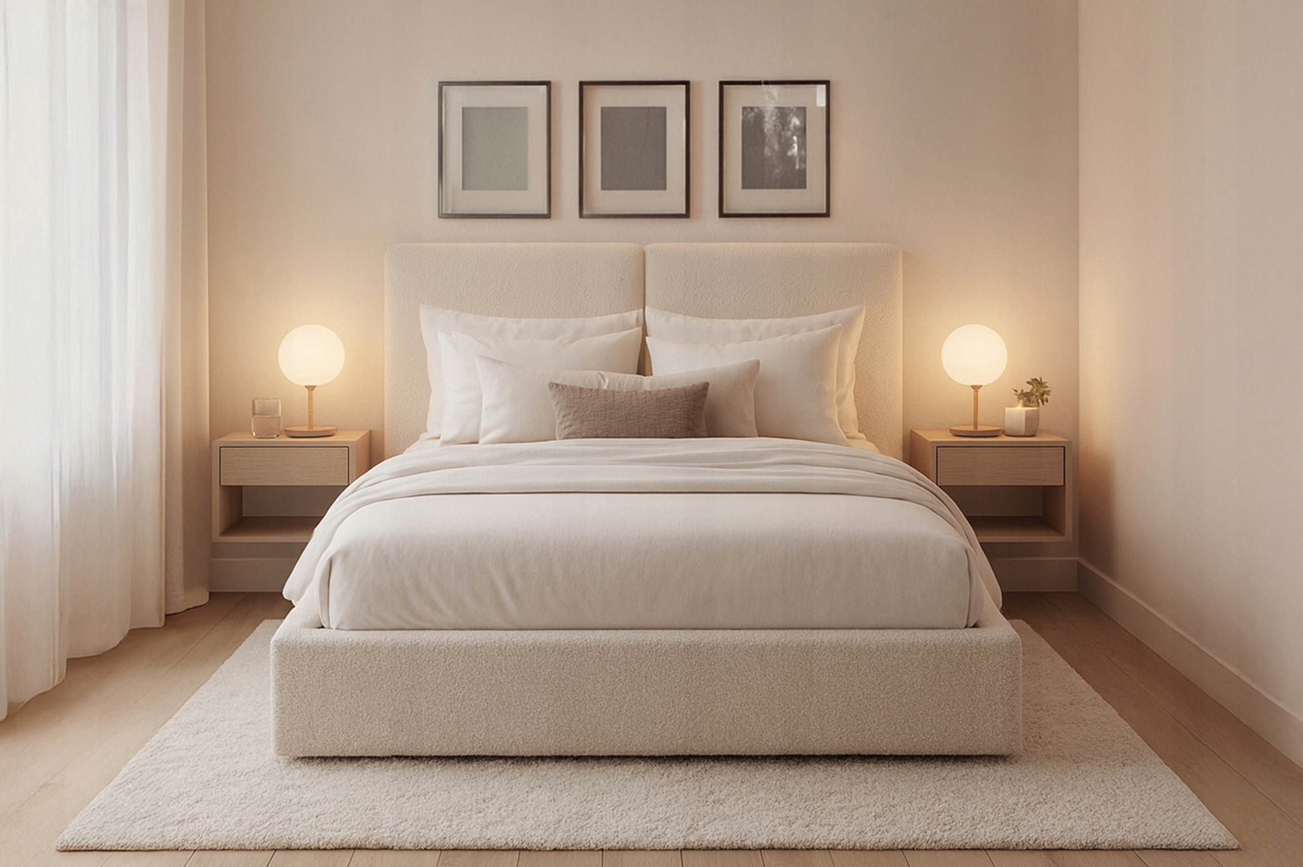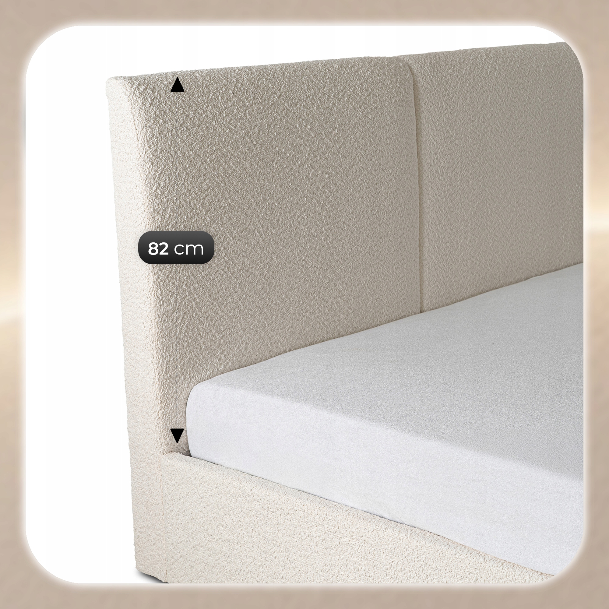 Tapicerowany zagłówek o wysokości 82 cm to gwarancja wygody podczas wieczornego czytania, oglądania telewizji czy relaksu z ulubioną kawą. Jego miękka pikowana konstrukcja i eleganckie wykończenie w kremowej barankowej tkaninie dodają wnętrzu nowoczesnego charakteru, a jednocześnie sprawiają, że łóżko prezentuje się niezwykle stylowo i przytulnie.