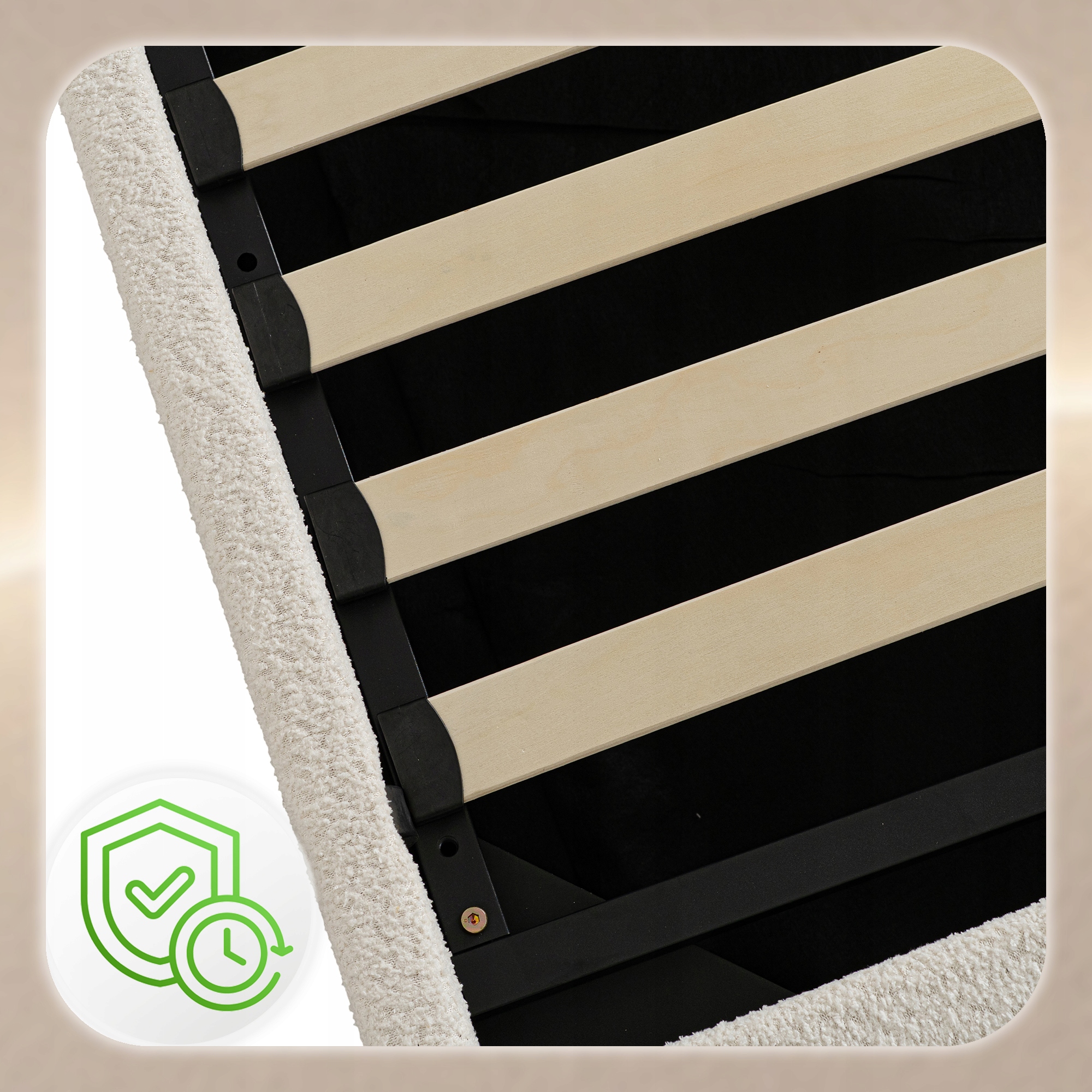 ✨ Łóżko 180x200 Tapicerowane Dwuosobowe Do Sypialni Baranek Kremowe MARSYLIA