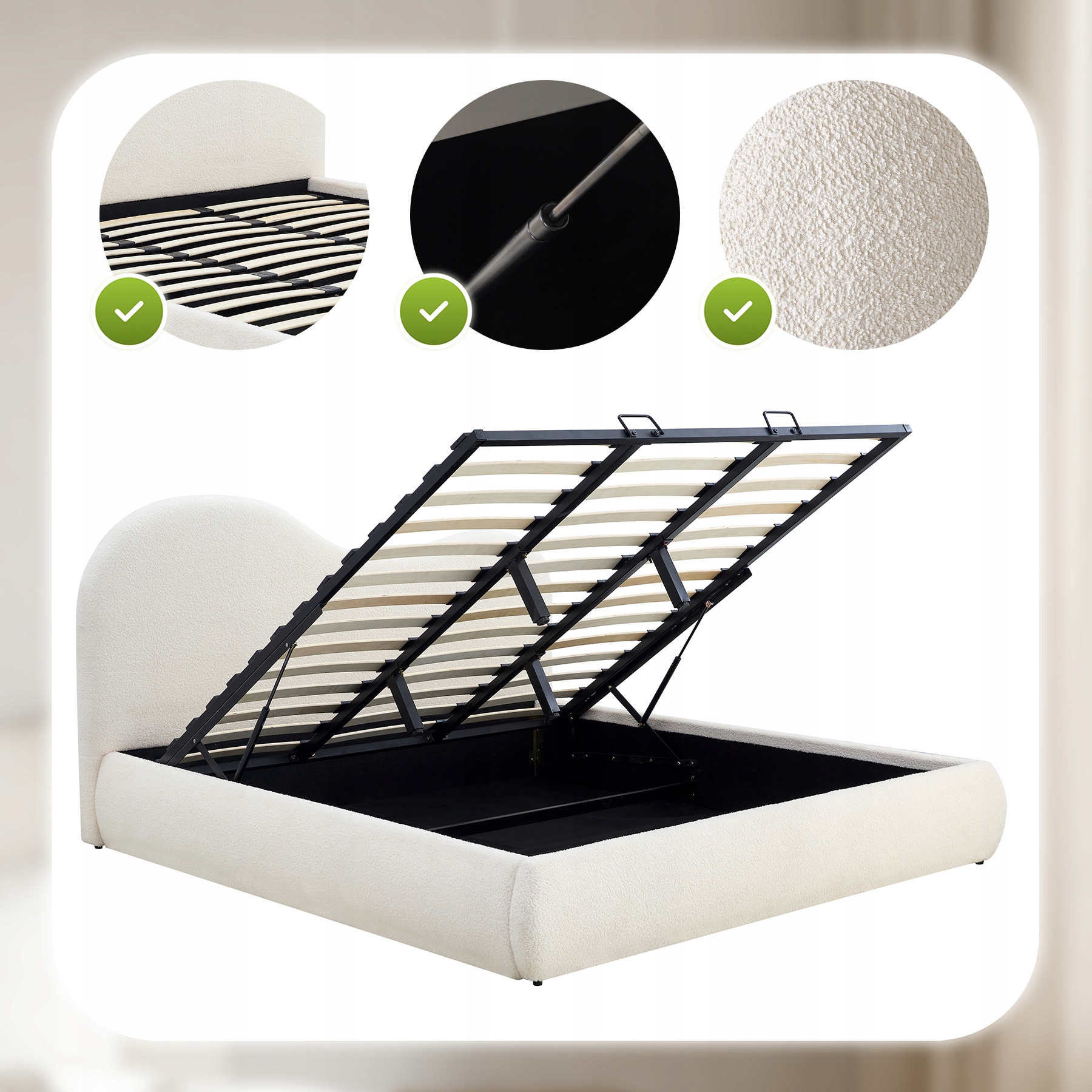 Zachwyca eleganckim kremowym kolorem i miękką tapicerką, która wnosi do wnętrza przytulność i styl. Dzięki praktycznemu pojemnikowi na pościel z solidnymi podnośnikami gazowymi, łączy w sobie design i funkcjonalność. To gwarancja wygody i nowoczesnego wyglądu w Twojej sypialni.