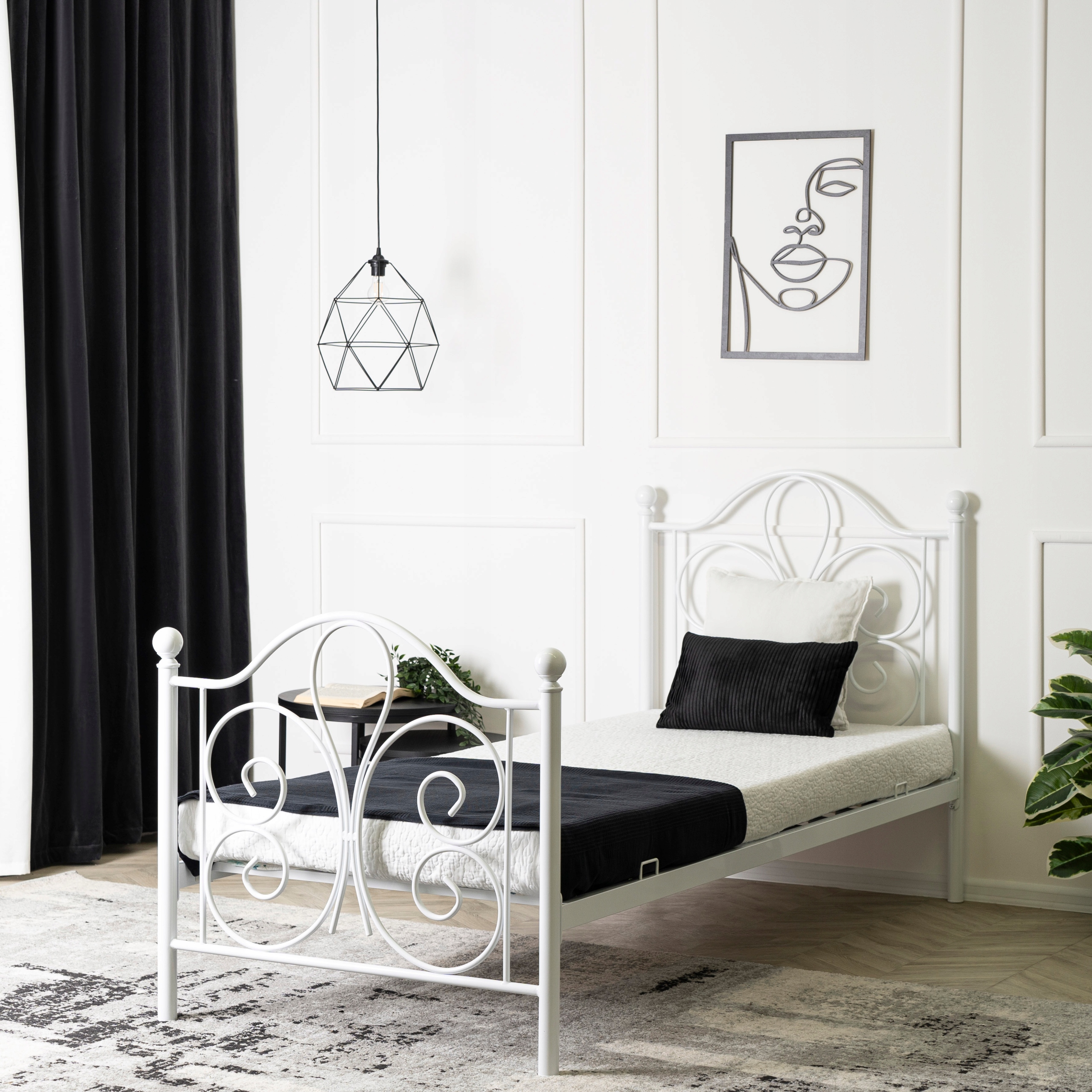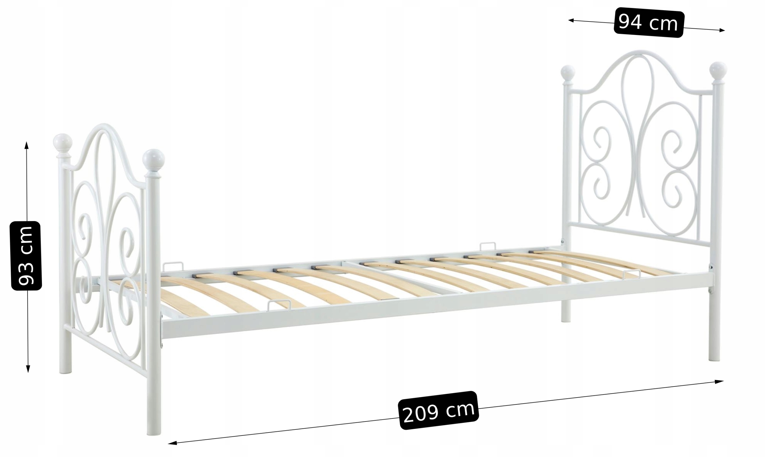 - Łóżko metalowe pojedyncze LORDI 90x200 w kolorze białym (Uwaga: łóżko jest sprzedawane bez materaca)