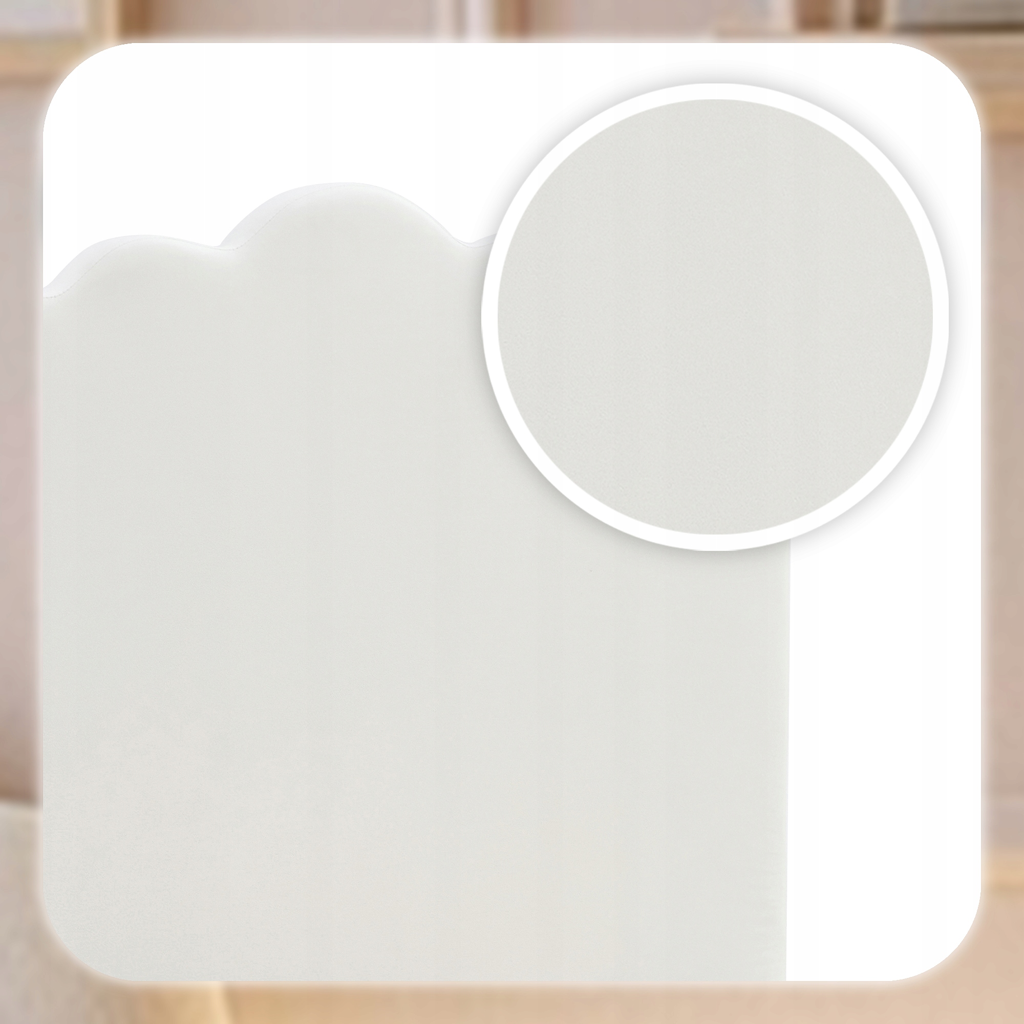 - Miękka welurowa tapicerka w kremowym kolorze – elegancka, przyjemna w dotyku i nadająca wnętrzu wyjątkowej przytulności.