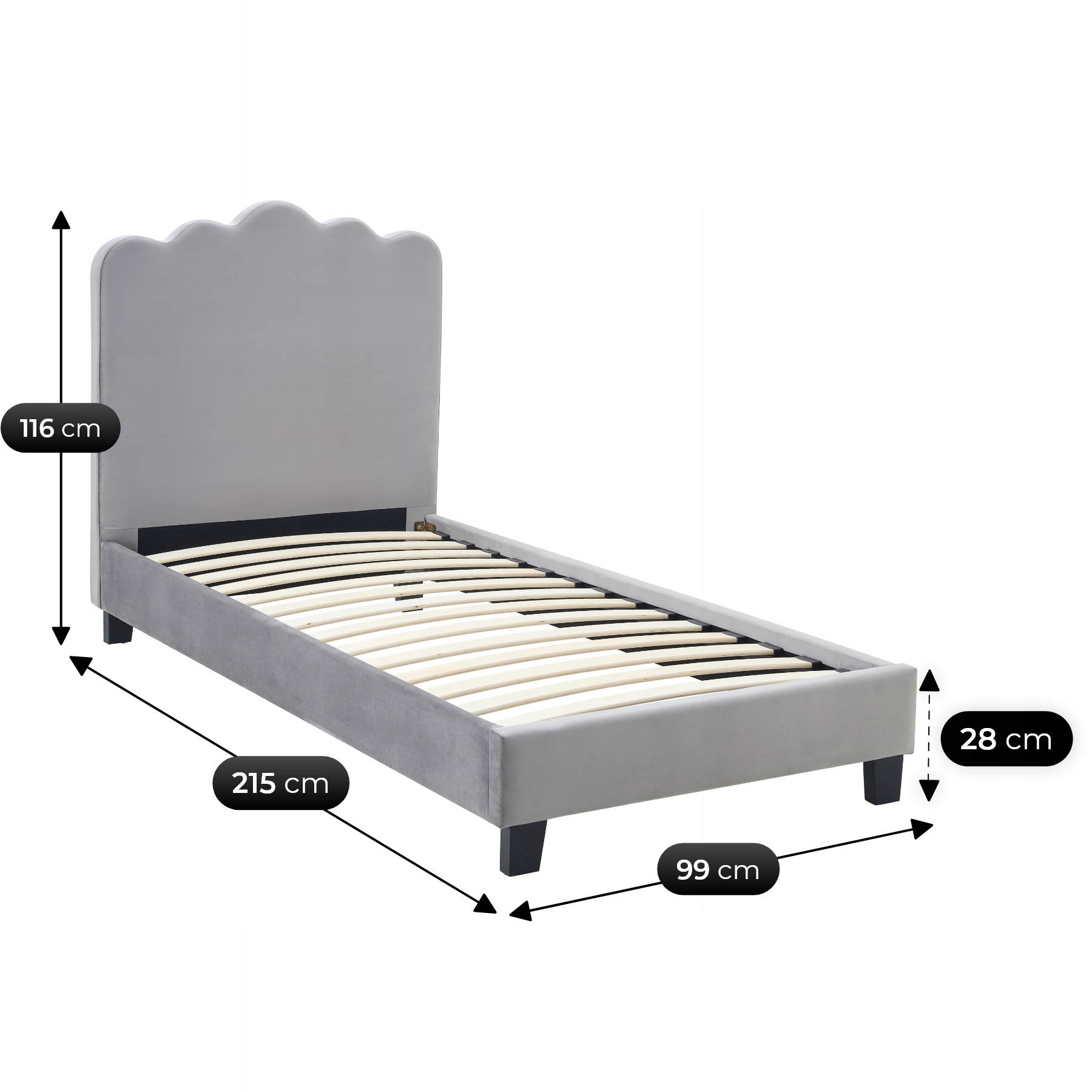Łóżko tapicerowane jest tkaniną welurową – przyjemną w dotyku i odporną na codzienne użytkowanie.
