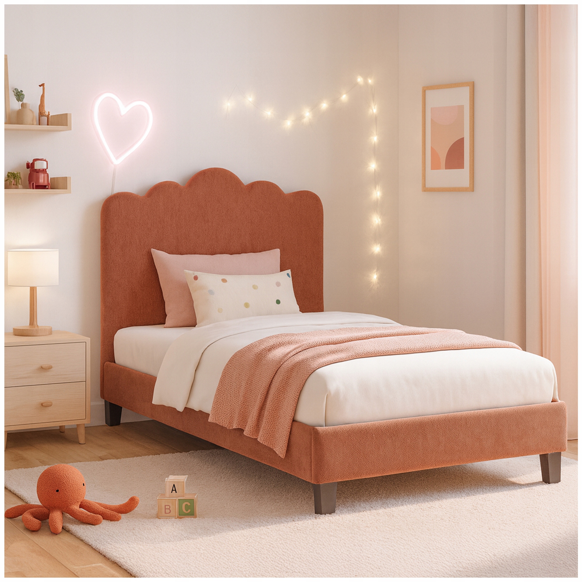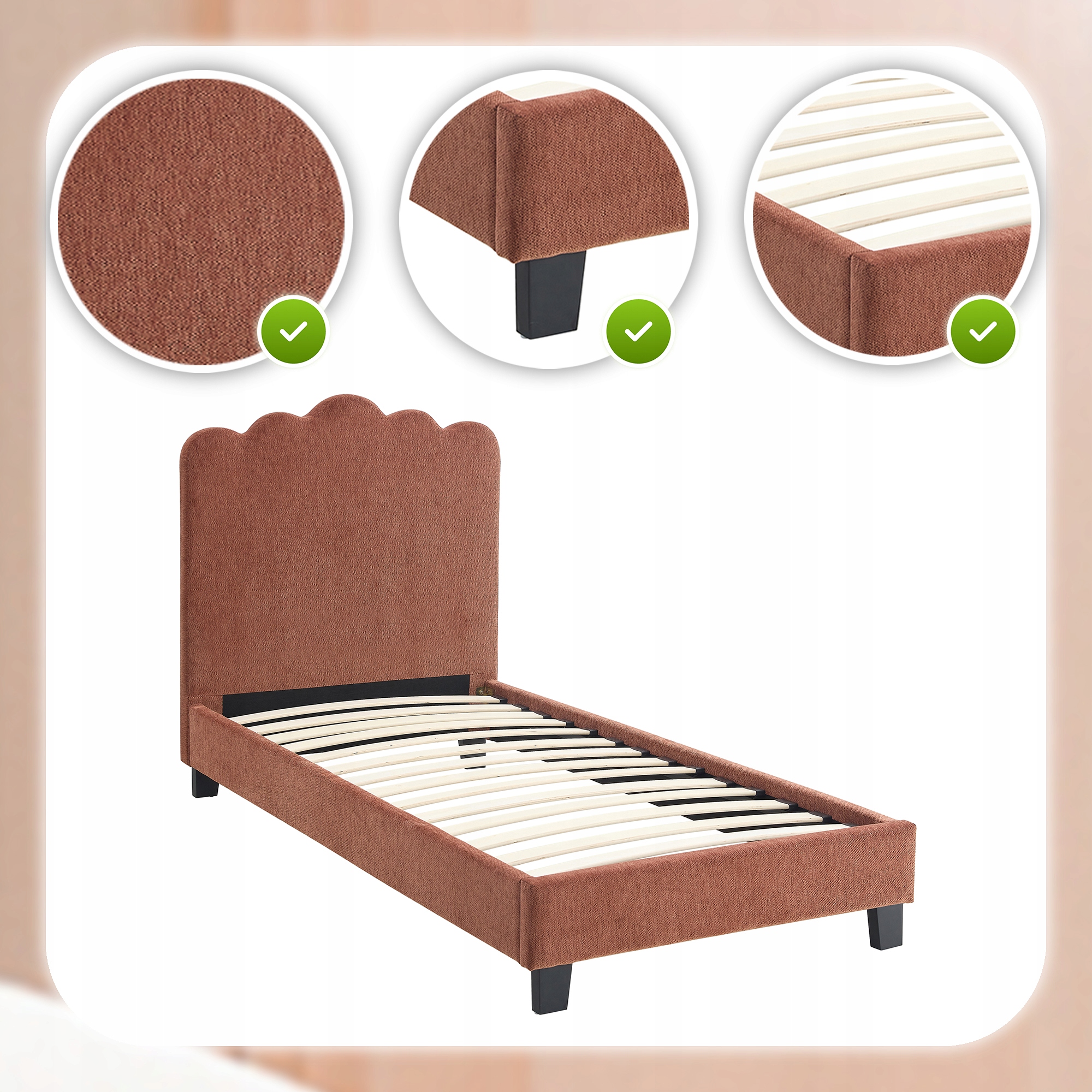 ✨ Łóżko 90x200 Tapicerowane Pojedyncze Jednoosobowe Do Sypialni Rudy CRATER