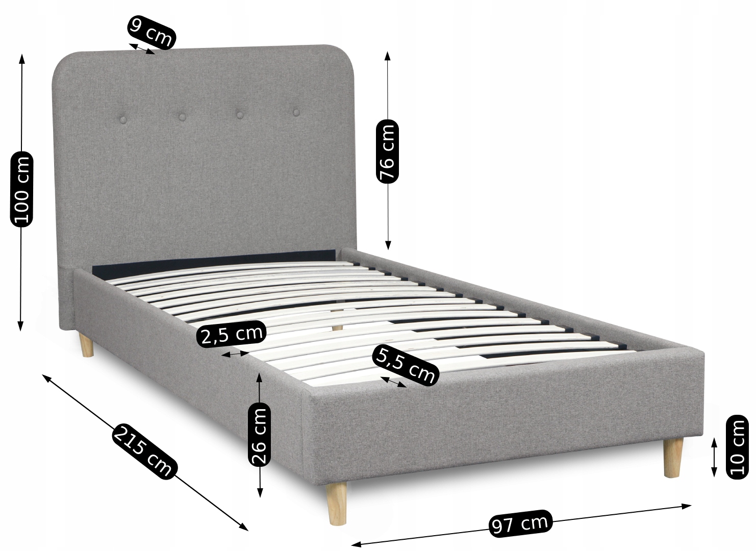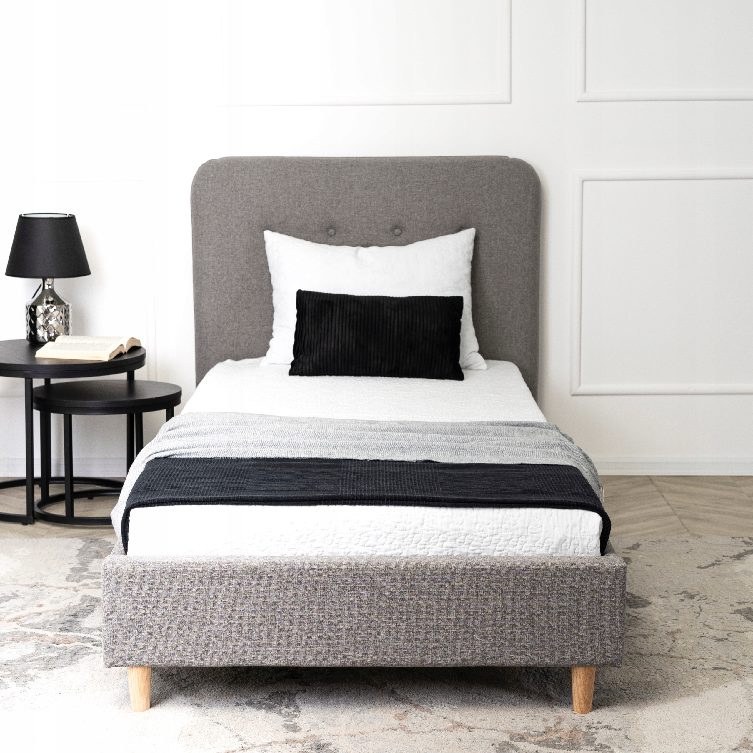 ⭐ Skandynawski design - jasny kolor tapicerki i nóżki z jasnego drewna w połączeniu z przyjemnym dla oka fasonem łóżka znakomicie wkomponują się w przytulnie urządzoną sypialnię lub pokój młodzieżowy.