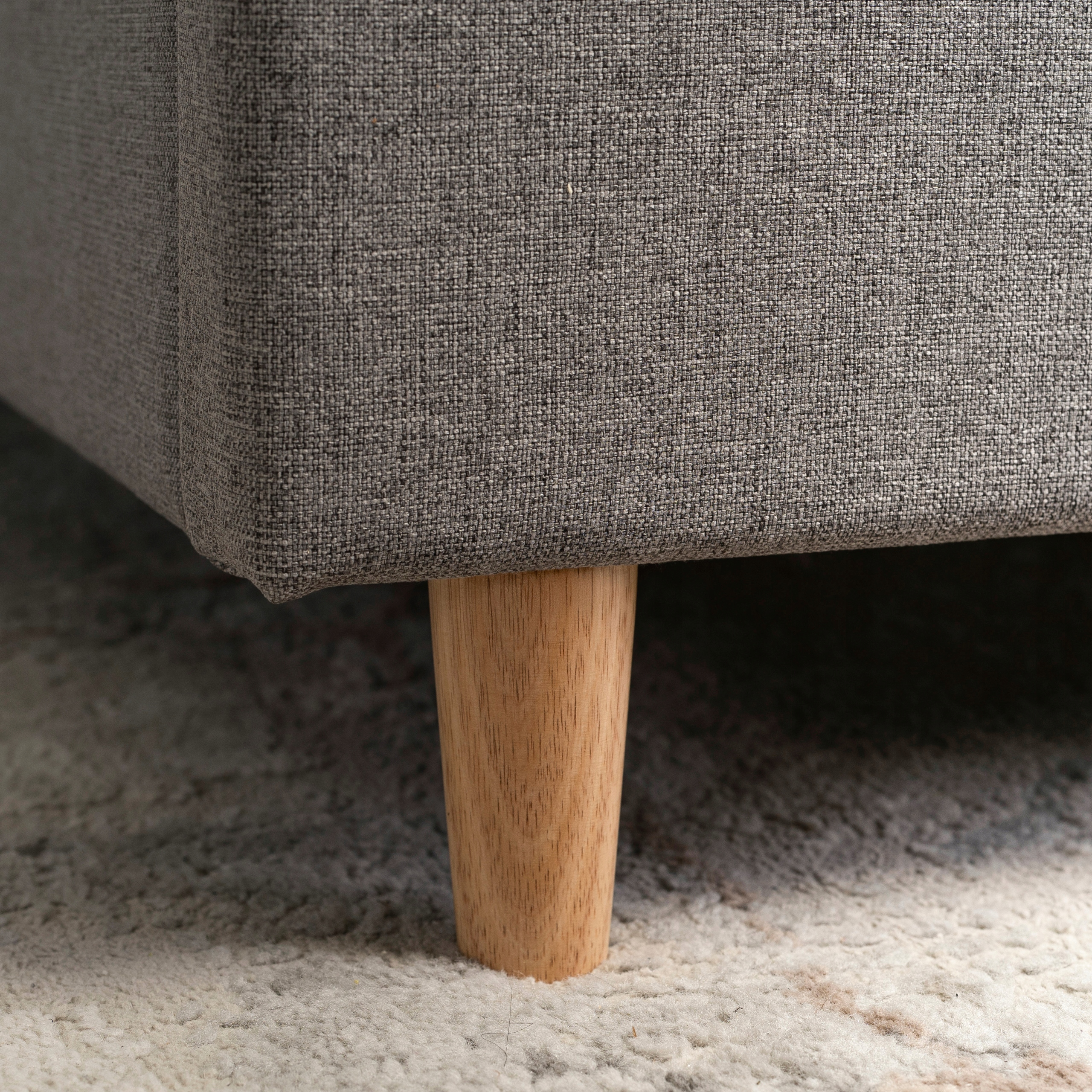 Subtelne nóżki mają kształt walca i są delikatnie zwężane ku dołowi. Zostały wykonane z drewna w naturalnym jasnym wybarwieniu. Ich wysokość wynosi 10 cm.