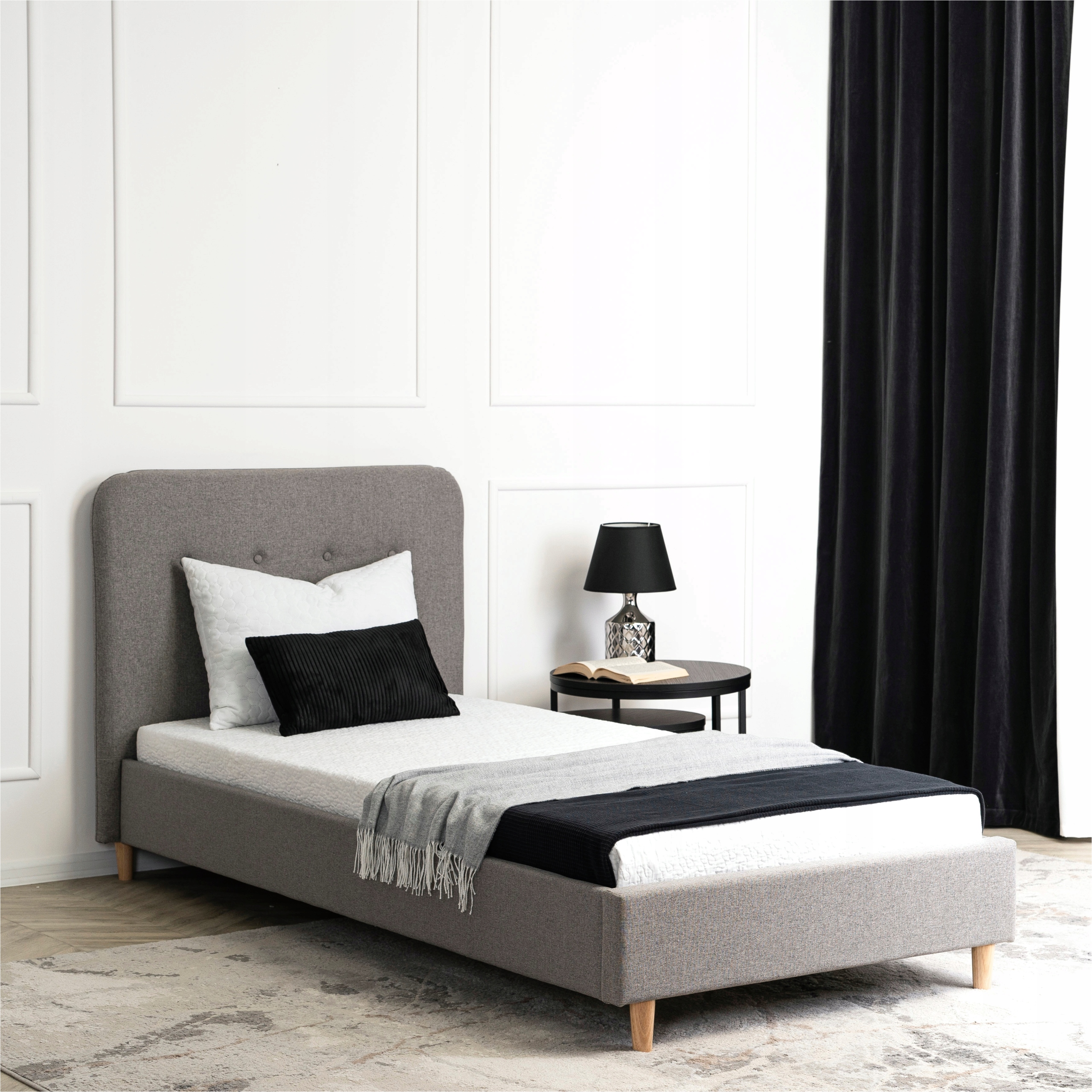 - Łóżko 90x200 jednoosobowe DENNIS w kolorze popielatym (Uwaga: łóżko jest sprzedawane bez materaca)