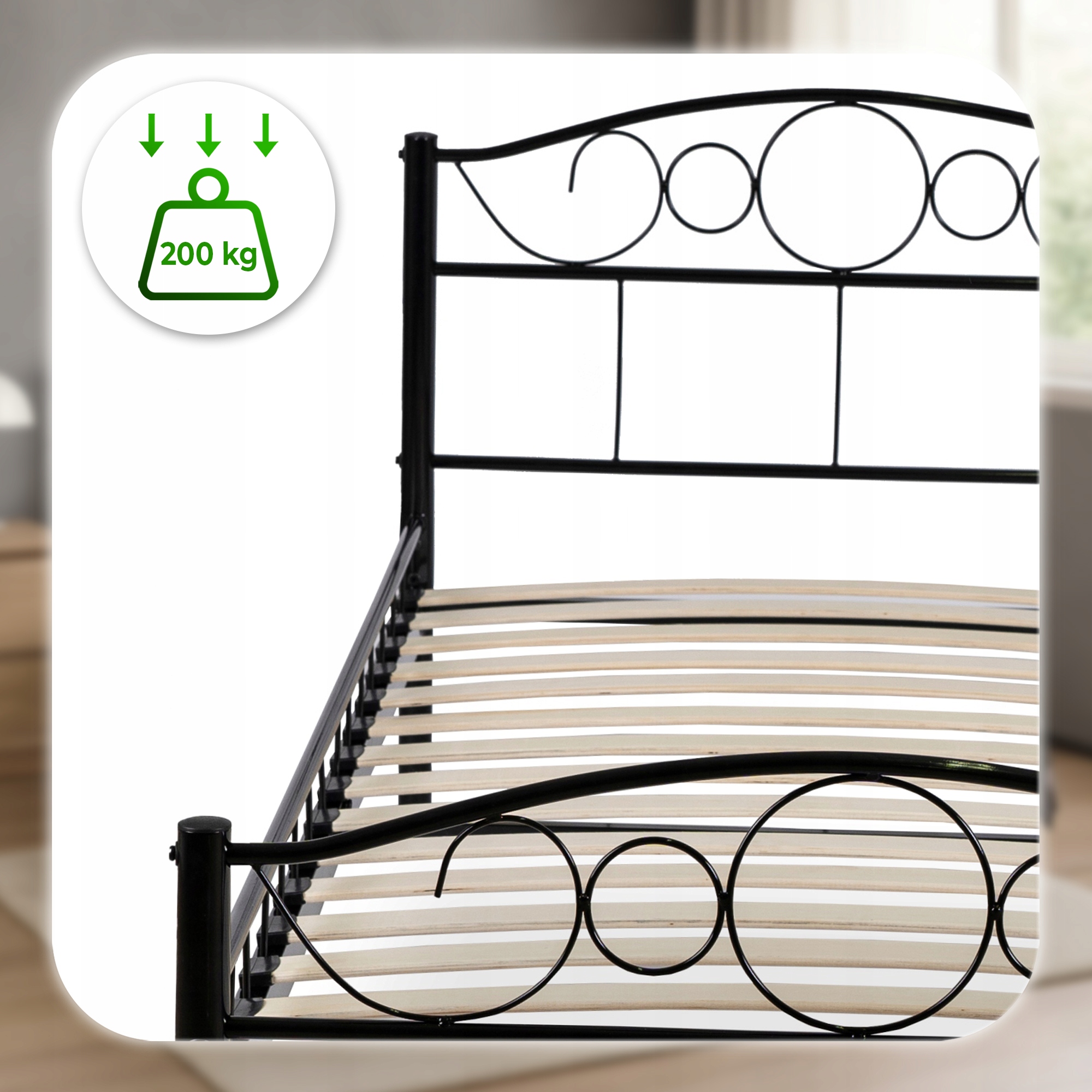 Łóżko GRIFFIN 90x200 cm to idealna propozycja do pokoju młodzieżowego, sypialni czy pokoju gościnnego. Metalowa rama w kolorze czarnym wykonana z lakierowanego metalu łączy w sobie trwałość i elegancki wygląd, a drewniany stelaż zapewnia odpowiednie podparcie dla materaca i komfort snu.