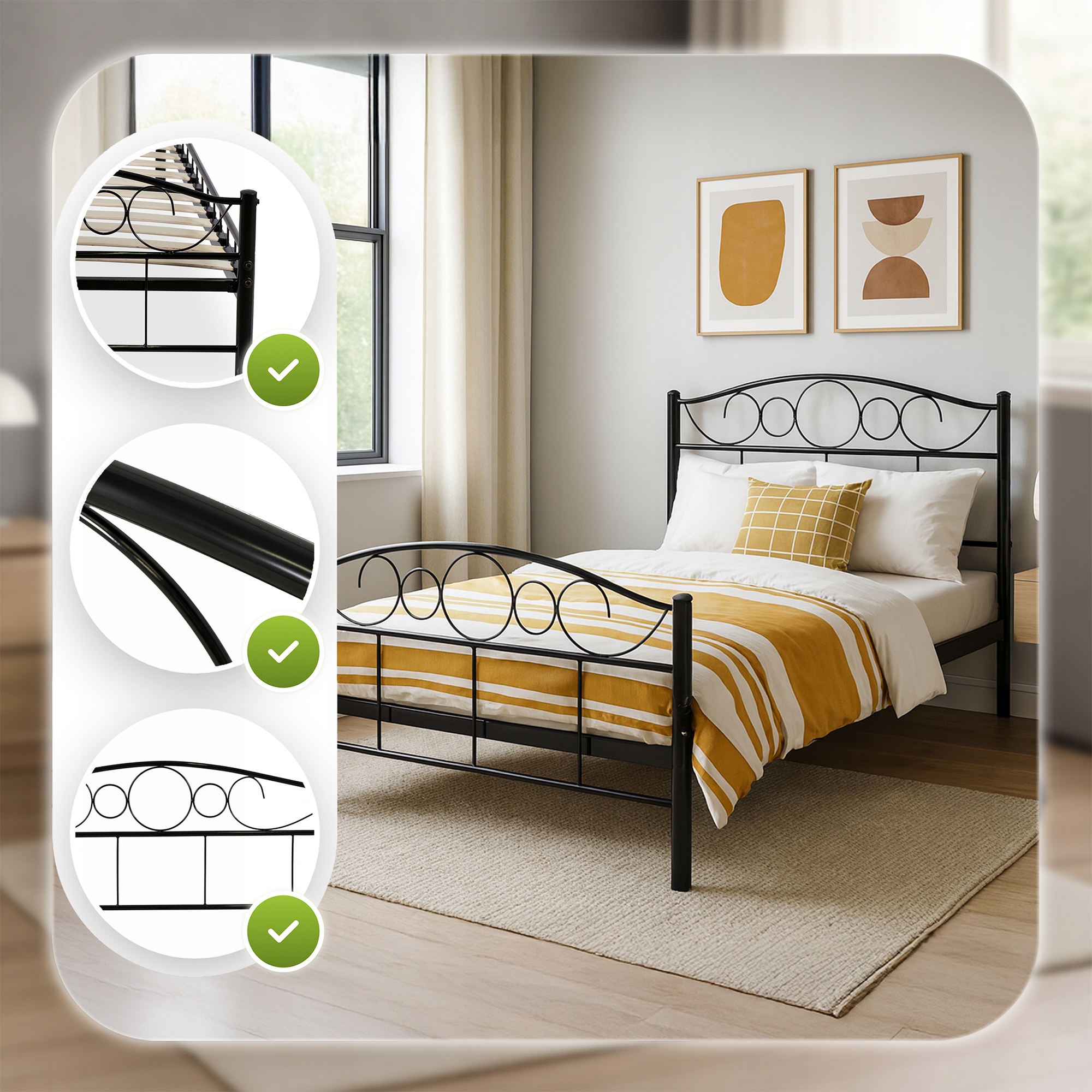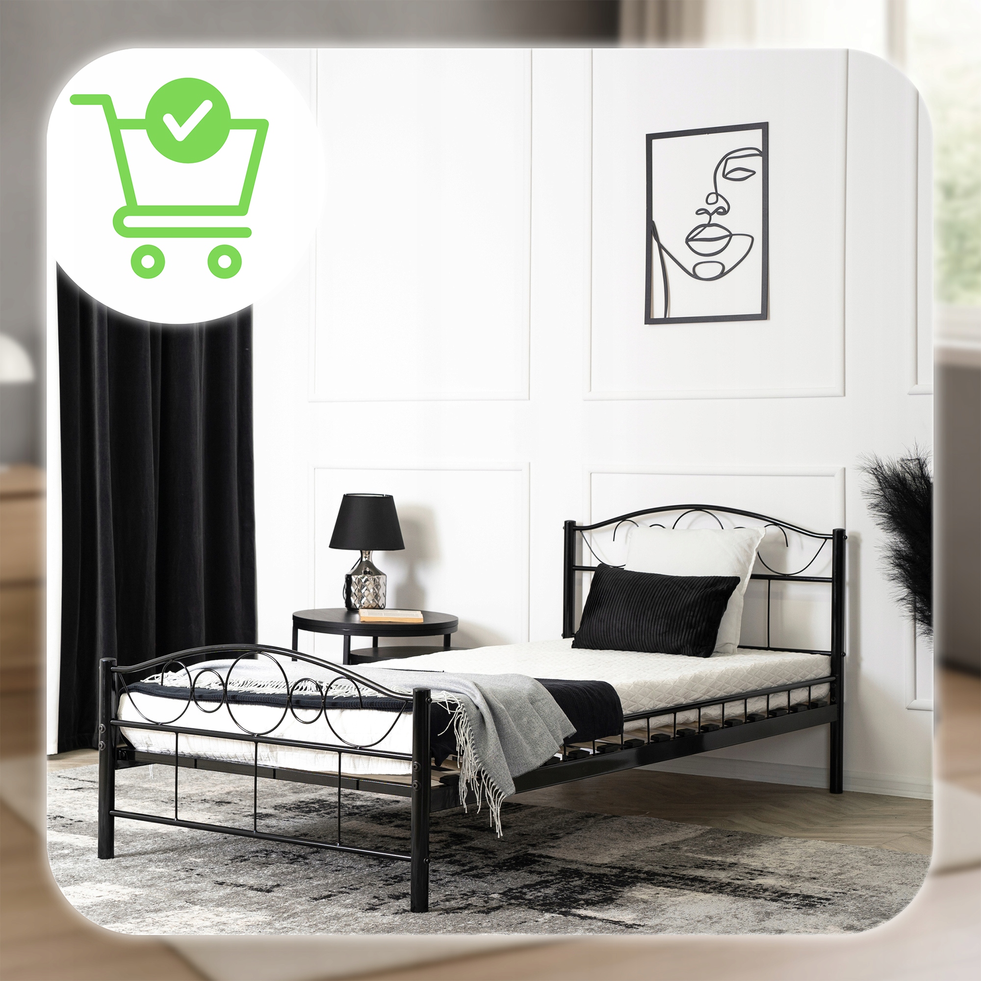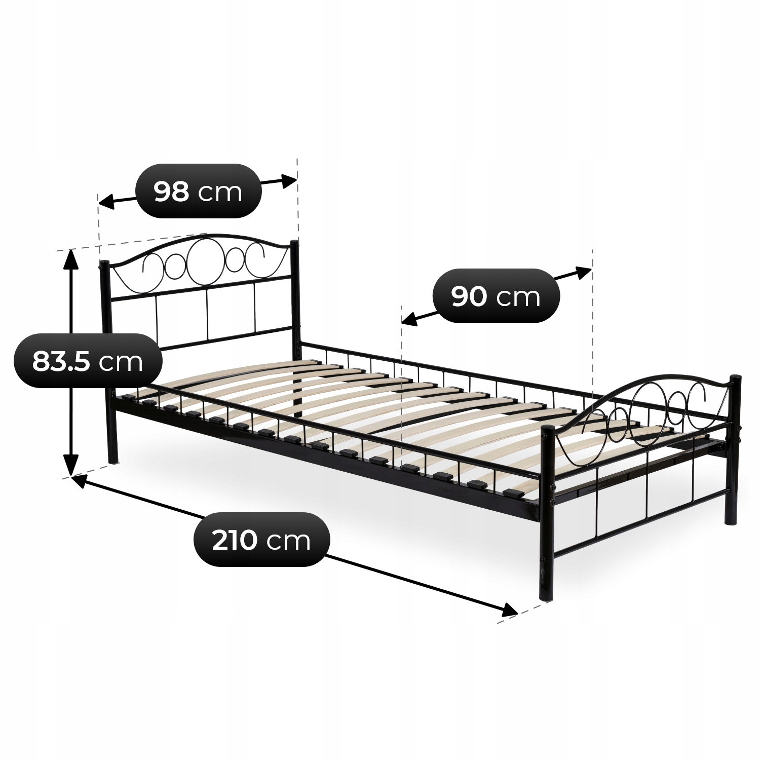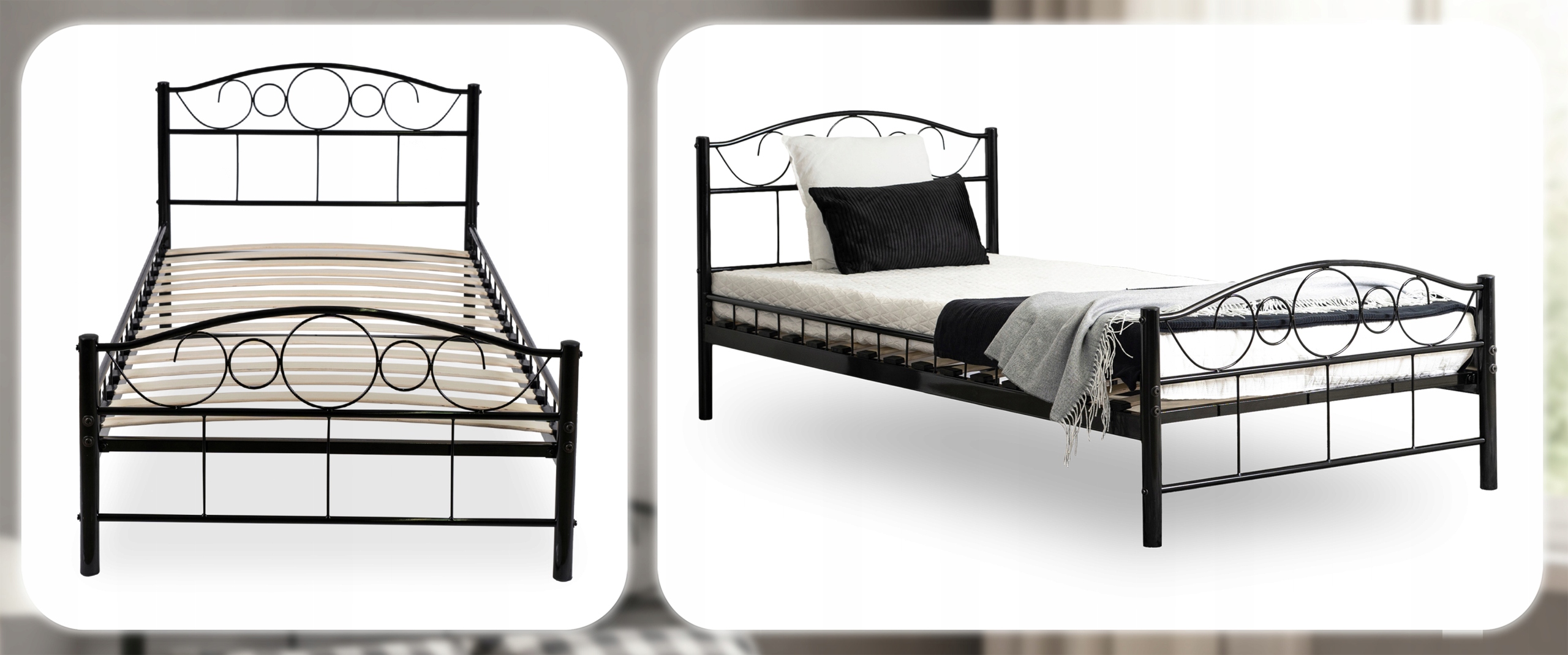 Łóżko Metalowe 90x200 Jednoosobowe Pojedyncze Młodzieżowe Czarne GRIFFIN ⭐⭐⭐⭐⭐