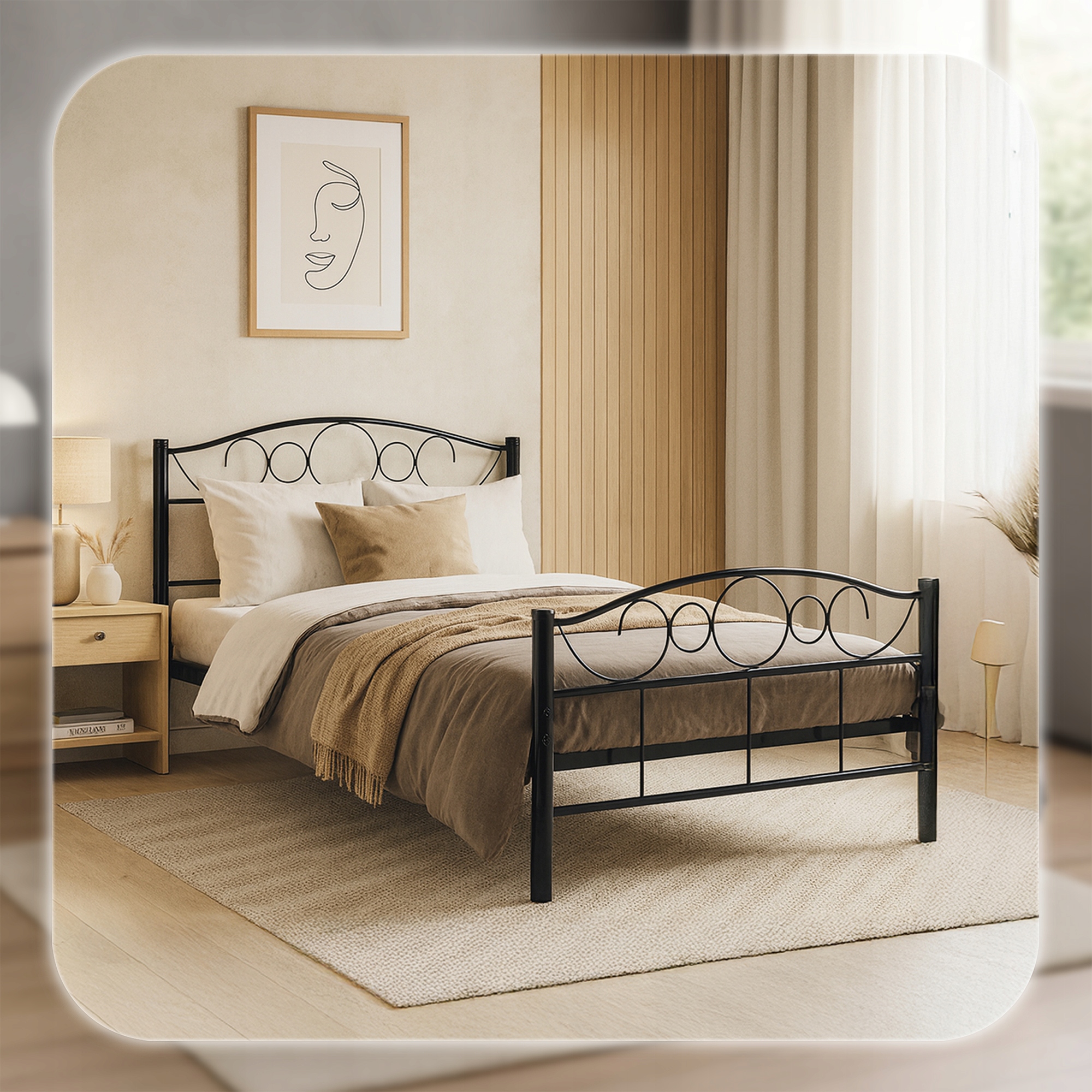 - Trwała metalowa rama – wykonana z lakierowanego metalu w kolorze czarnym, odporna na uszkodzenia i stabilna przez lata.