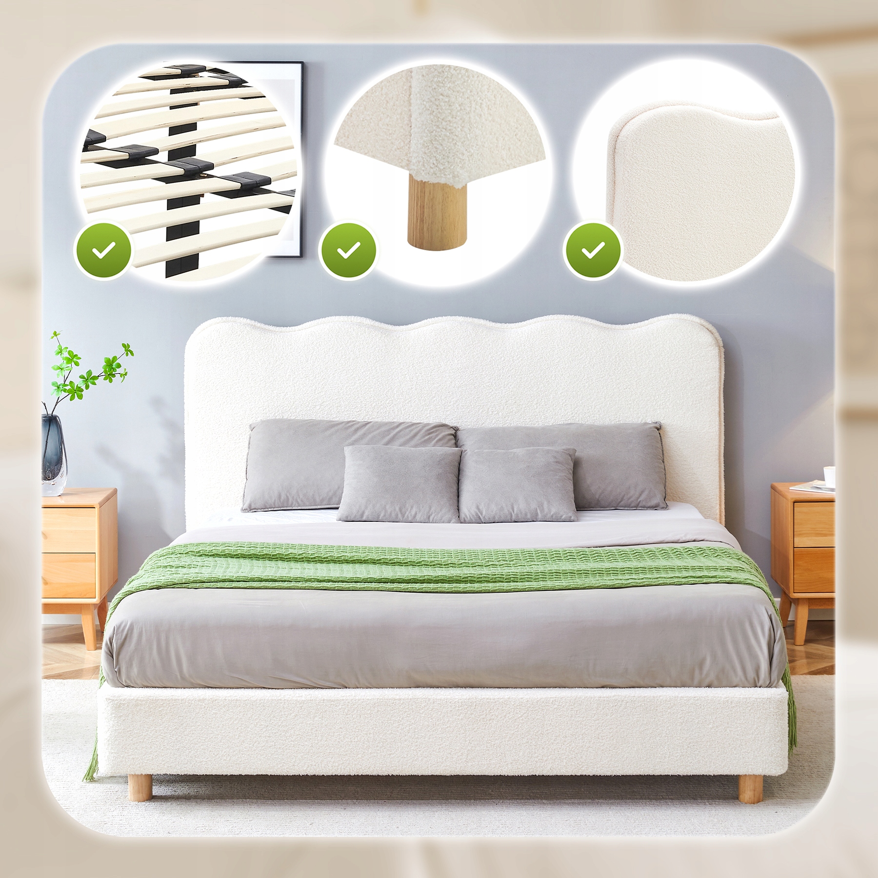 ✨ Łóżko 160x200 Tapicerowane Dwuosobowe Do Sypialni Baranek Krem IZMIR