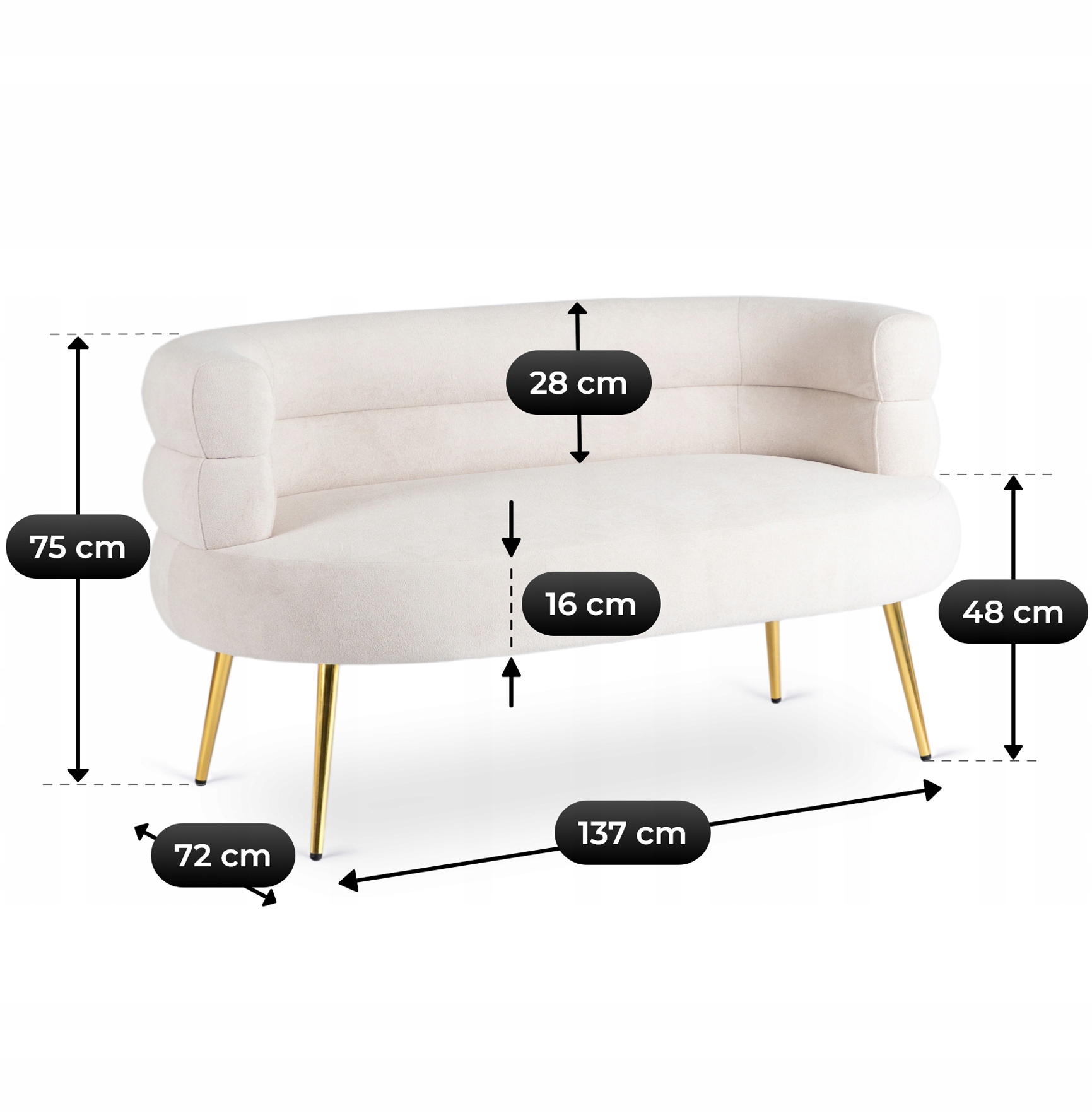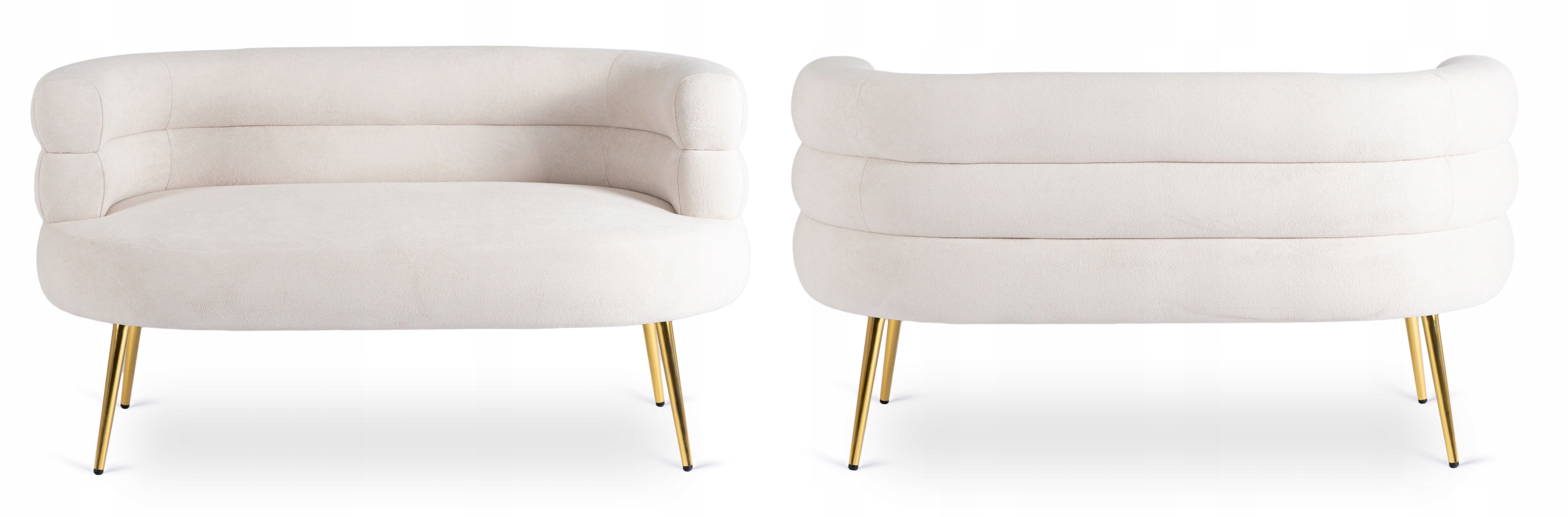 ✨ Mała Sofa Glamour Kanapa Fotel Dwuosobowy Do Salonu Kremowy Złoty NANTES