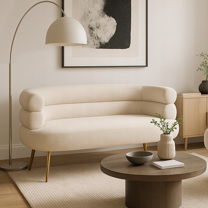 Sofka NANTES łączy w sobie elegancję i komfort, które przyciągają spojrzenia. Jej kremowy odcień sprawia, że doskonale komponuje się z różnymi aranżacjami – od minimalistycznych po bardziej klasyczne wnętrza. Smukłe, złote nóżki dodają całości luksusowego charakteru.