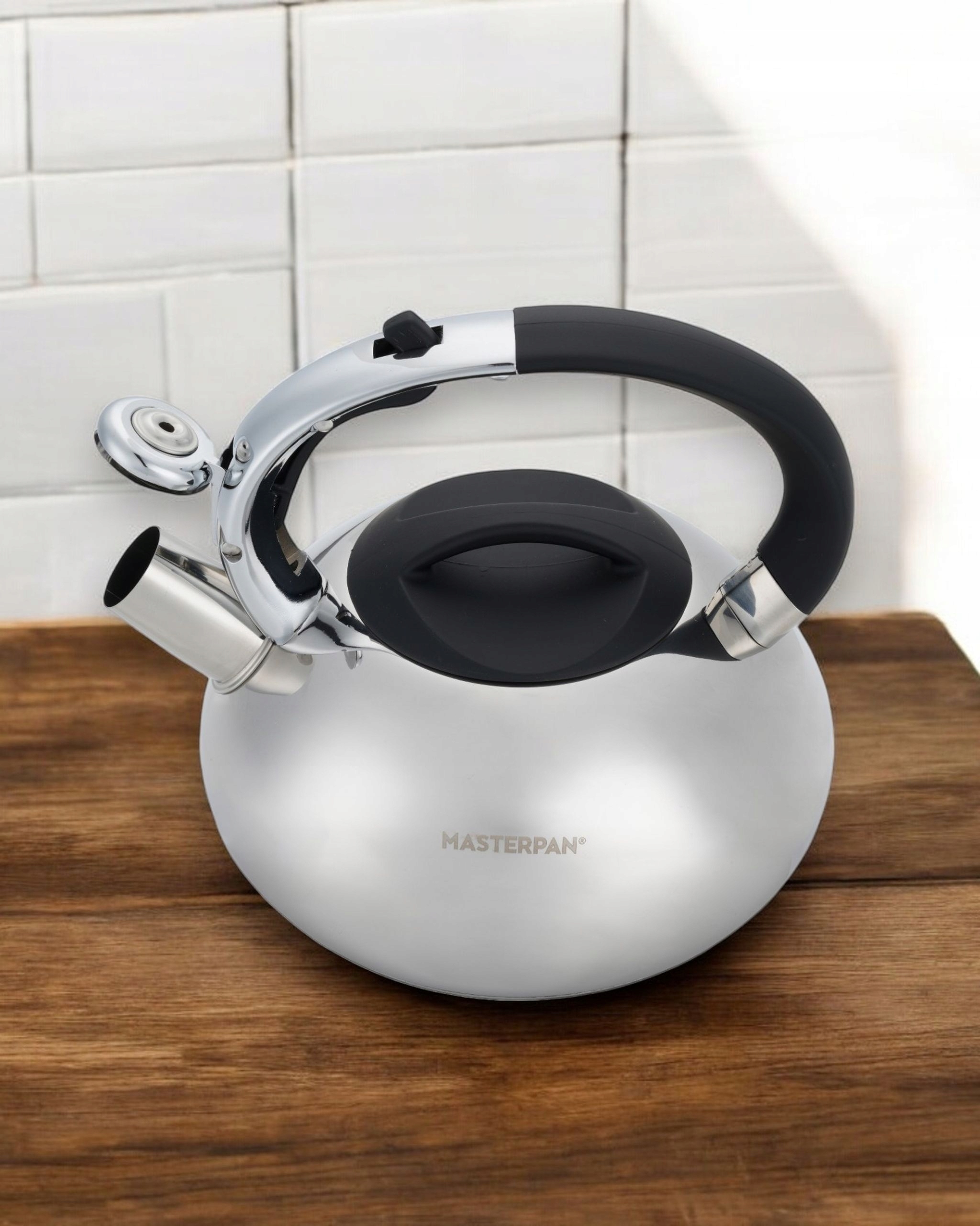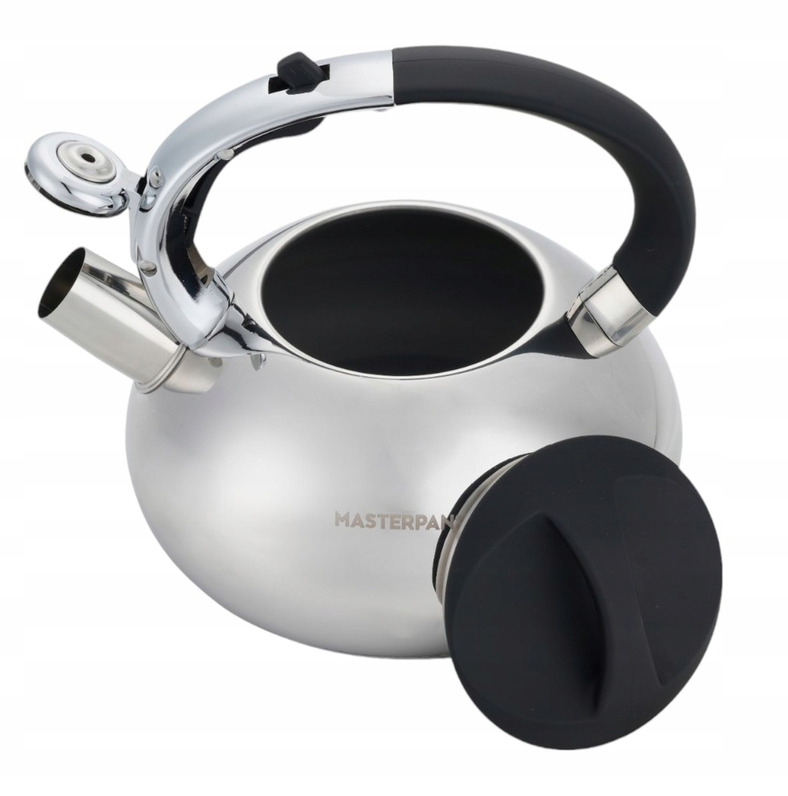 Stalowy czajnik 2-litrowy w połysku i czarną rączką