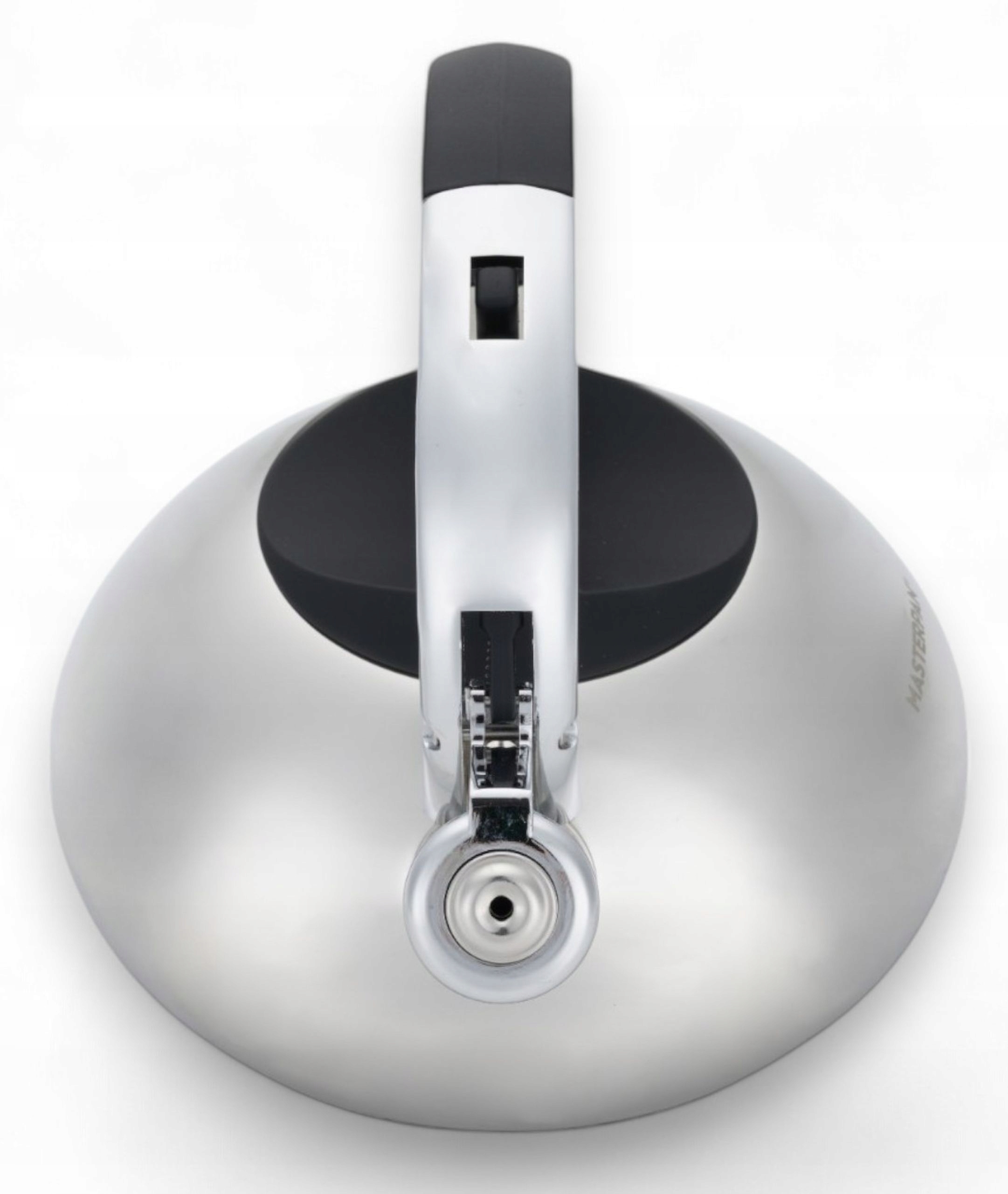 - Wbudowany gwizdek z mechanizmem w rączce pozwala na łatwe otwieranie bez potrzeby dotykania gorących elementów, co zwiększa bezpieczeństwo i komfort.