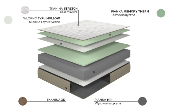 • Pięć stref o różnej twardości zapewnia doskonałe wsparcie dla każdej części ciała.