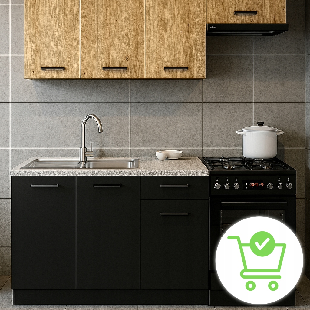 Uwaga! Zestaw nie zawiera blatu ani zlewu – to daje Ci pełną swobodę wyboru materiałów i wykończenia.