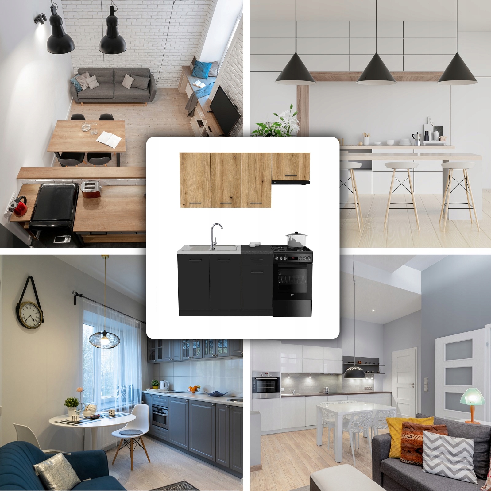✨ Meble Kuchenne Zestaw Mebli Na Wymiar Modułowe Czarny/Dąb Evoke MODERN 170
