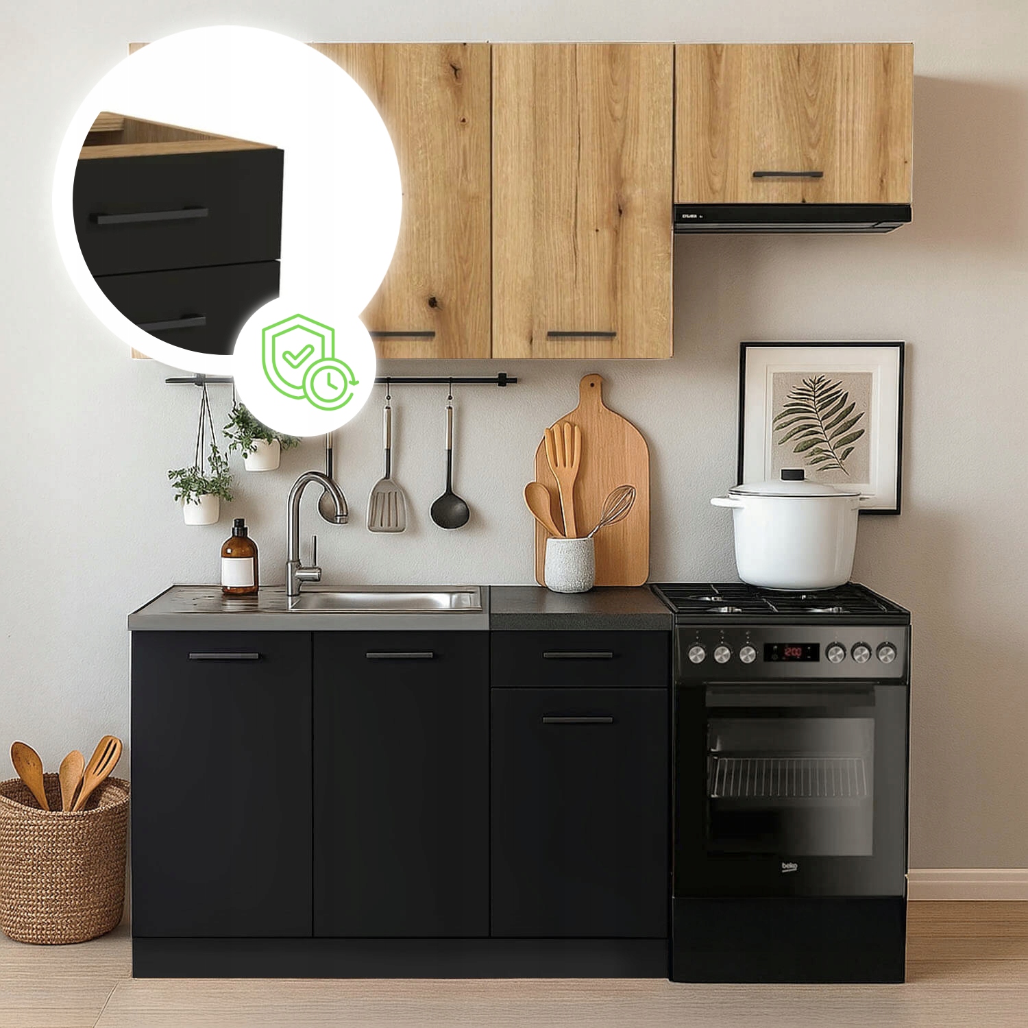 Kompaktowy wymiar – 170 cm szerokości idealny do małych kuchni, aneksów i mieszkań, w których liczy się każdy centymetr przestrzeni.