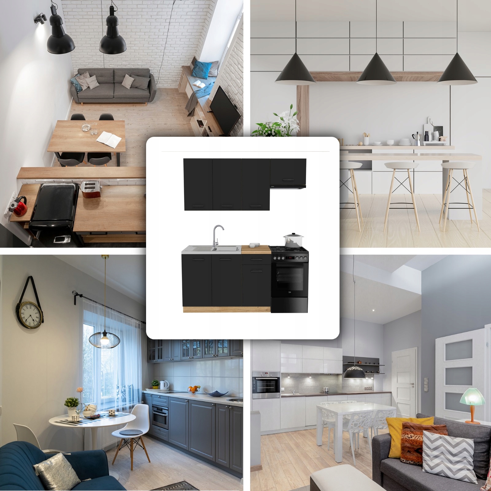 ✨ Meble Kuchenne Zestaw Mebli Na Wymiar Modułowe Czarny MODERN 170