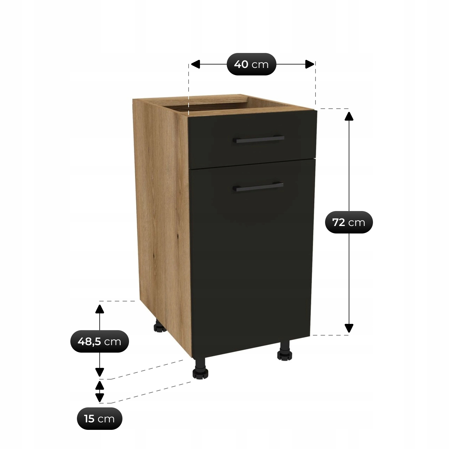 Możliwość własnego doboru blatu – zestaw sprzedawany bez blatu, co daje pełną swobodę aranżacyjną i dopasowanie do własnego stylu.