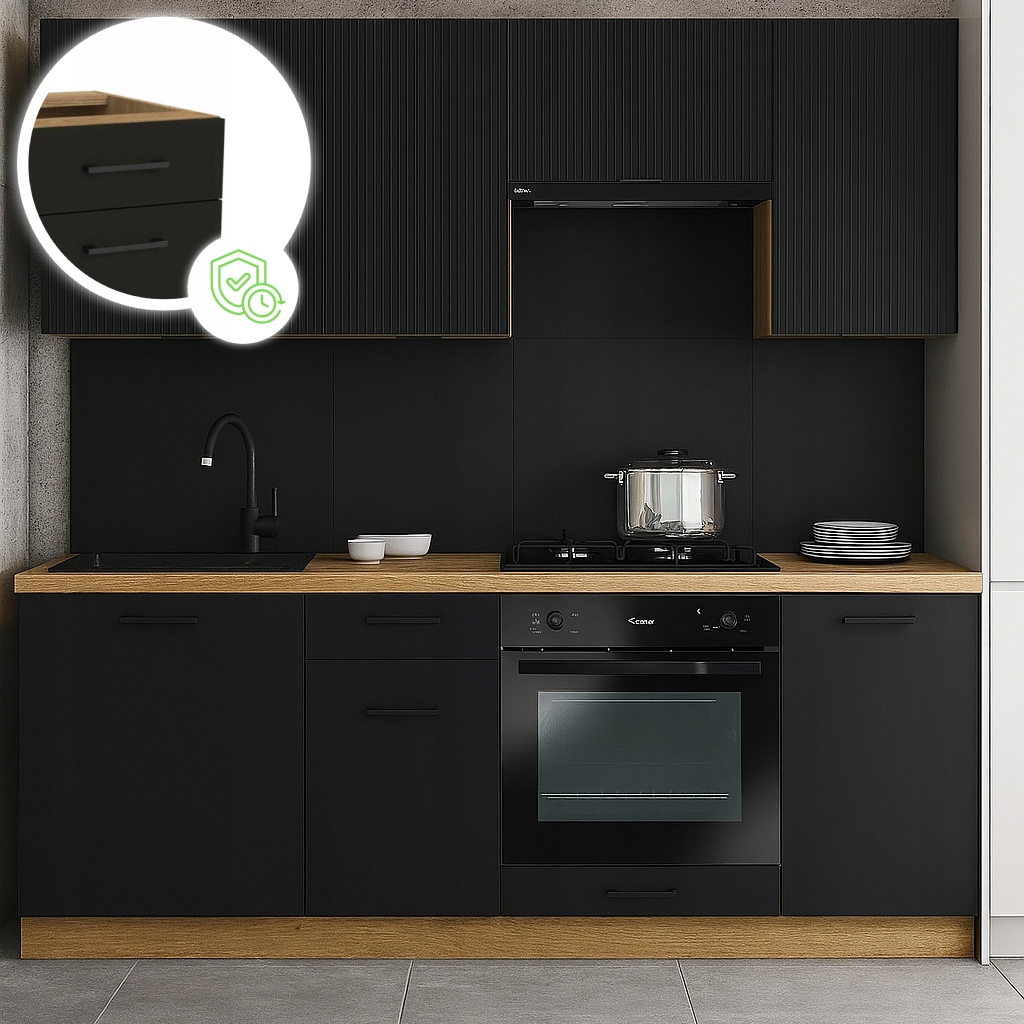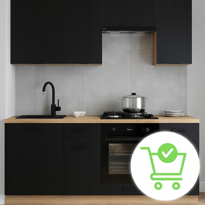 ✨ Meble Kuchenne Zestaw Mebli Na Wymiar Modułowe Czarny MODERN 200
