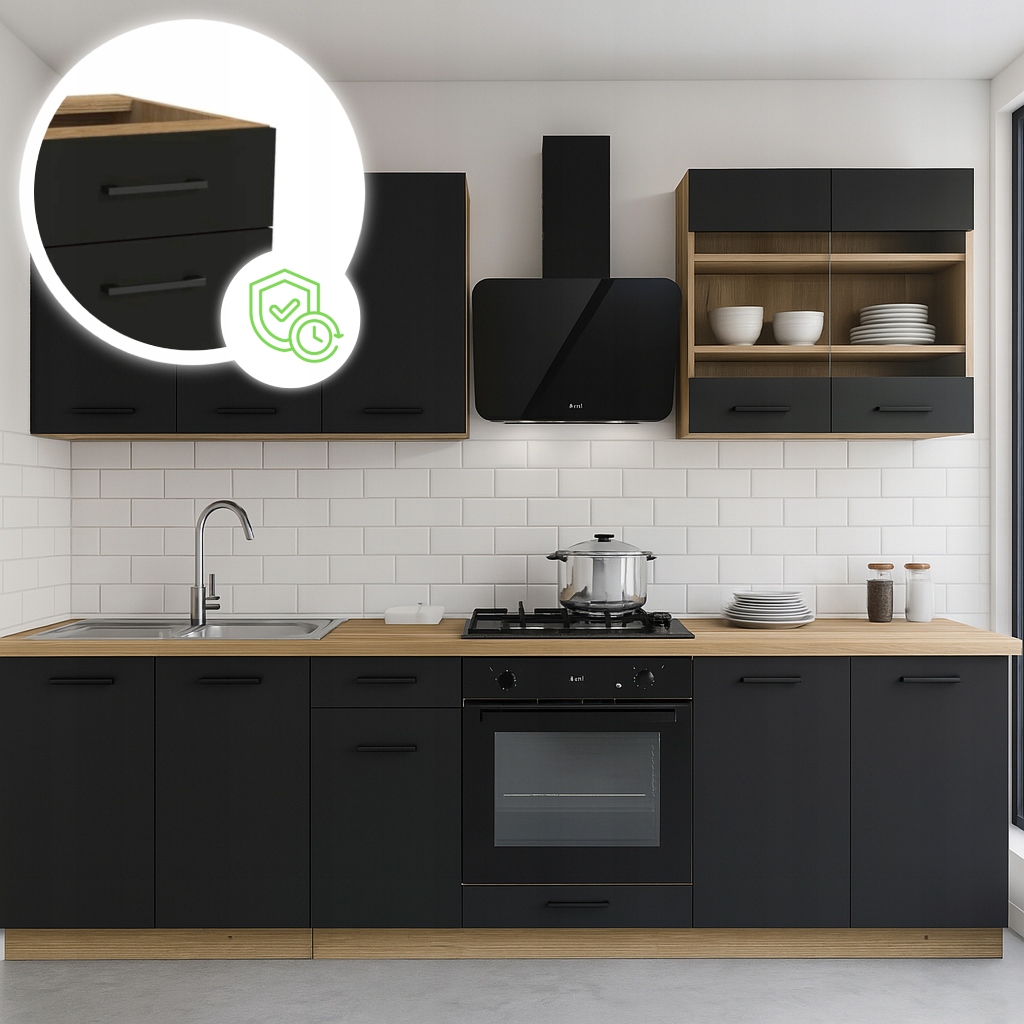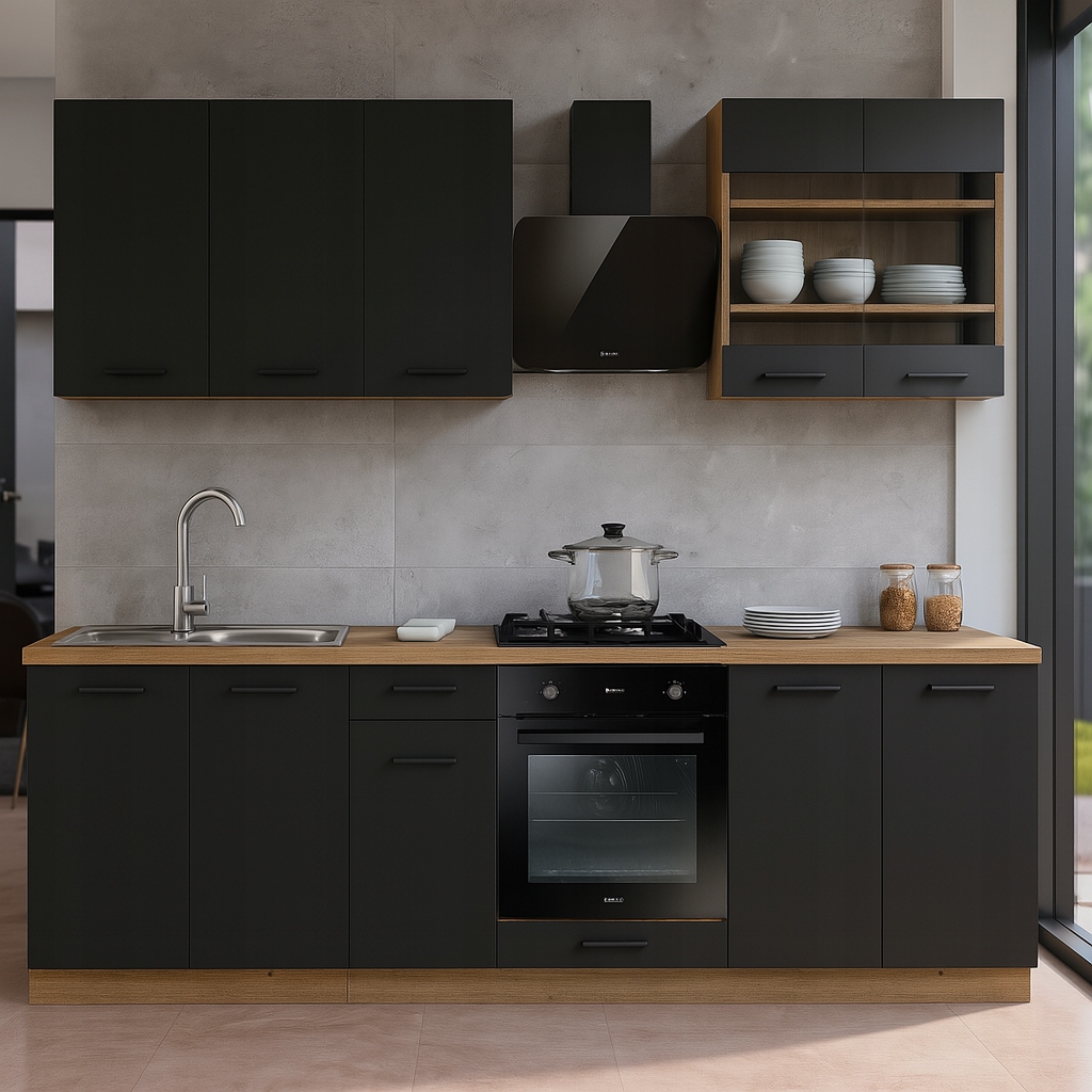 ✨ Meble Kuchenne Zestaw Mebli Na Wymiar Modułowe Czarny MODERN 260