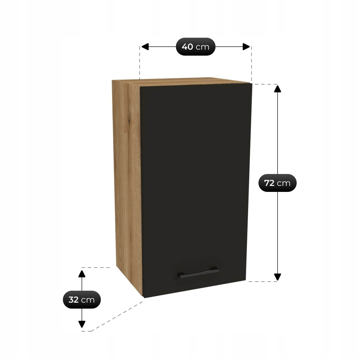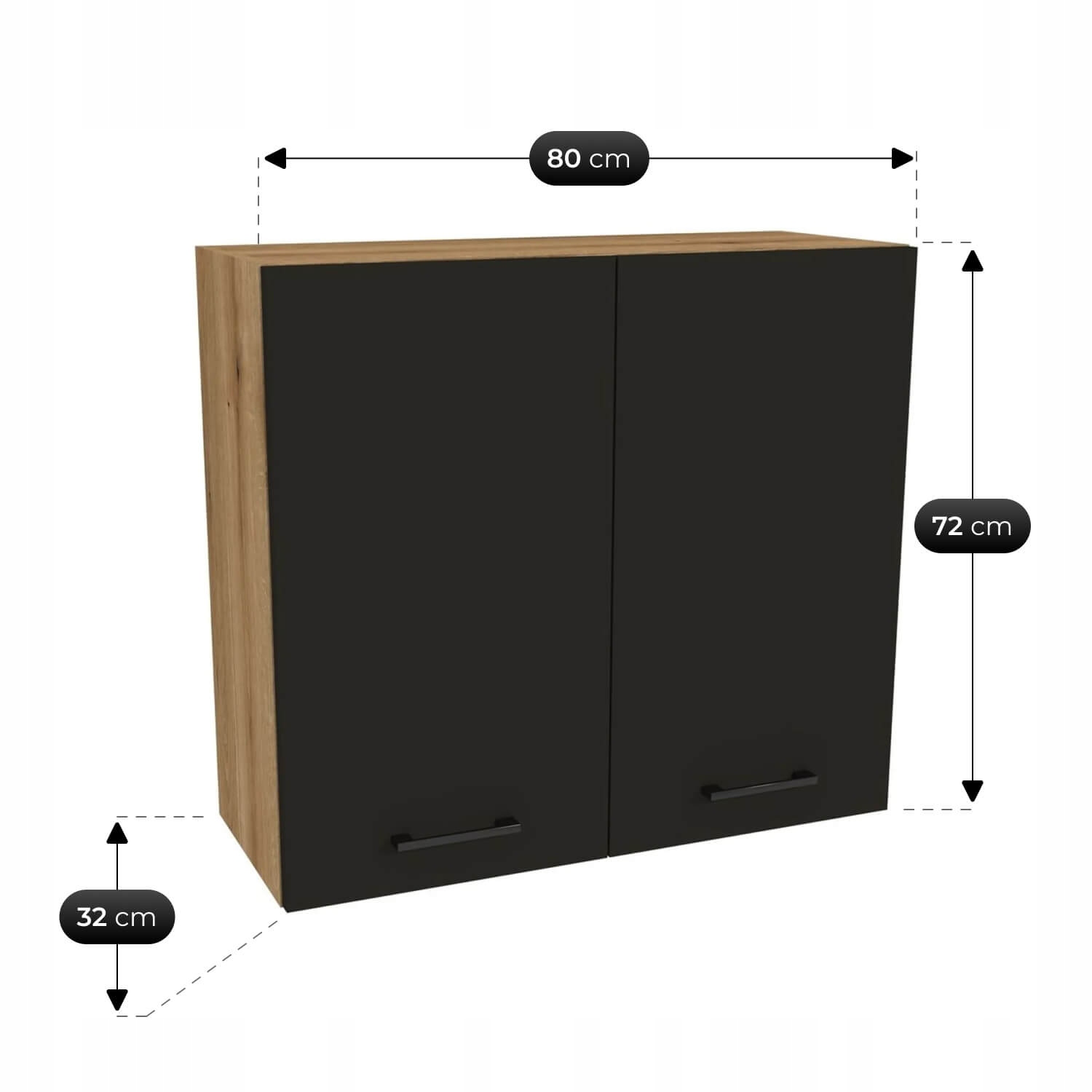 Szafki dolne i górne w praktycznym układzie – zapewniają wygodne przechowywanie naczyń, garnków i artykułów spożywczych w zasięgu ręki.