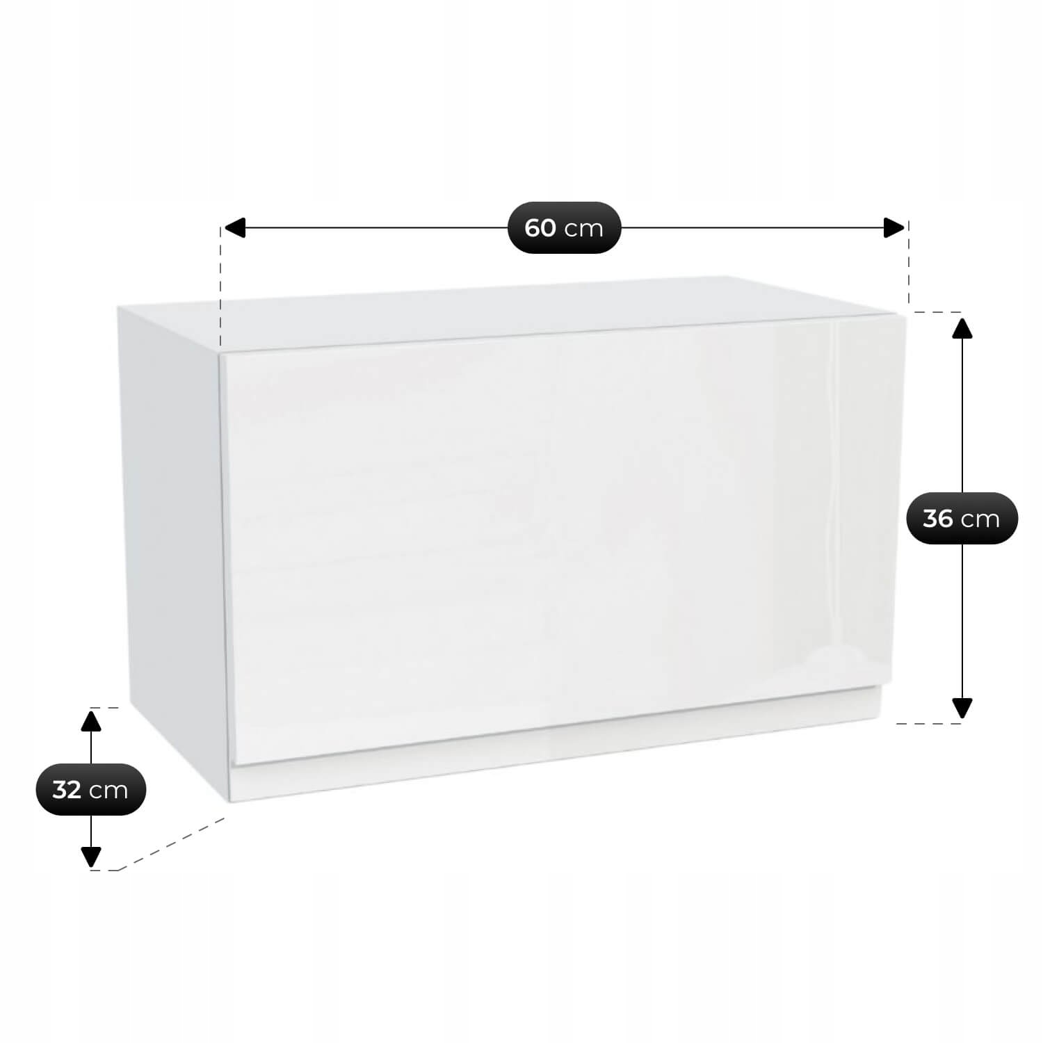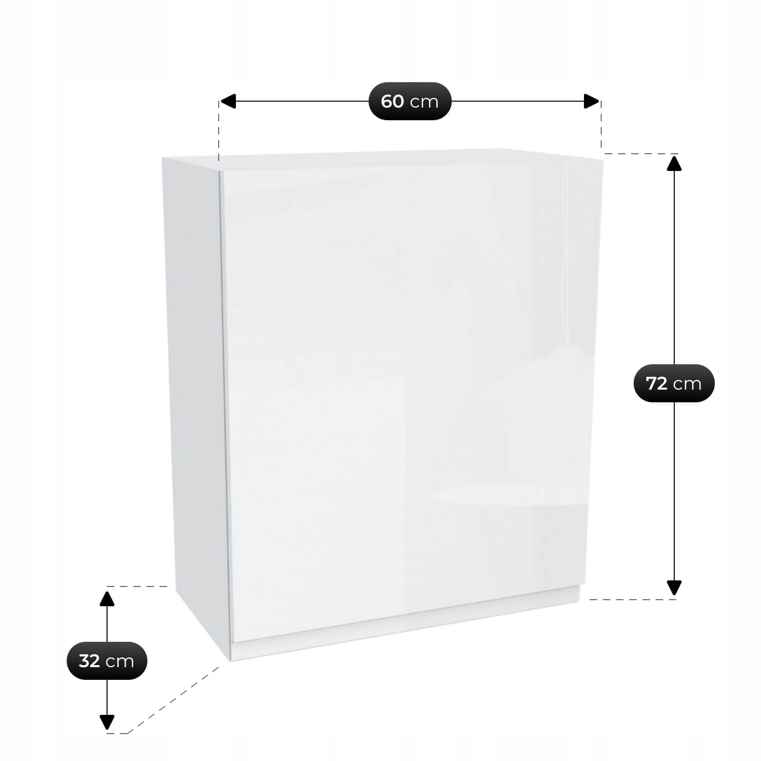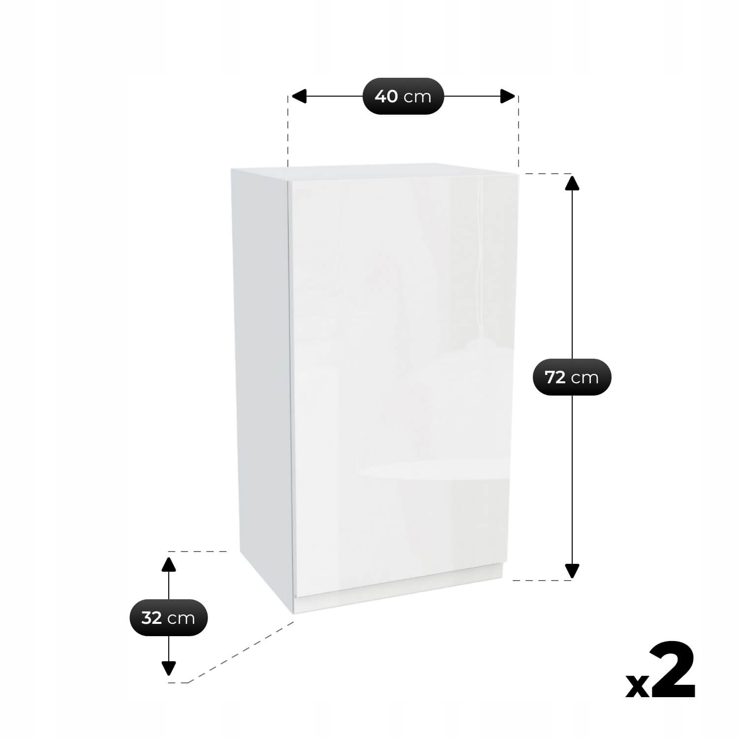 Fronty wykonane są z płyty MDF pokrytej folią na wysoki połysk, co zapewnia trwałość oraz nowoczesny wygląd. Korpusy to solidna płyta laminowana odporna na wilgoć i codzienne użytkowanie.