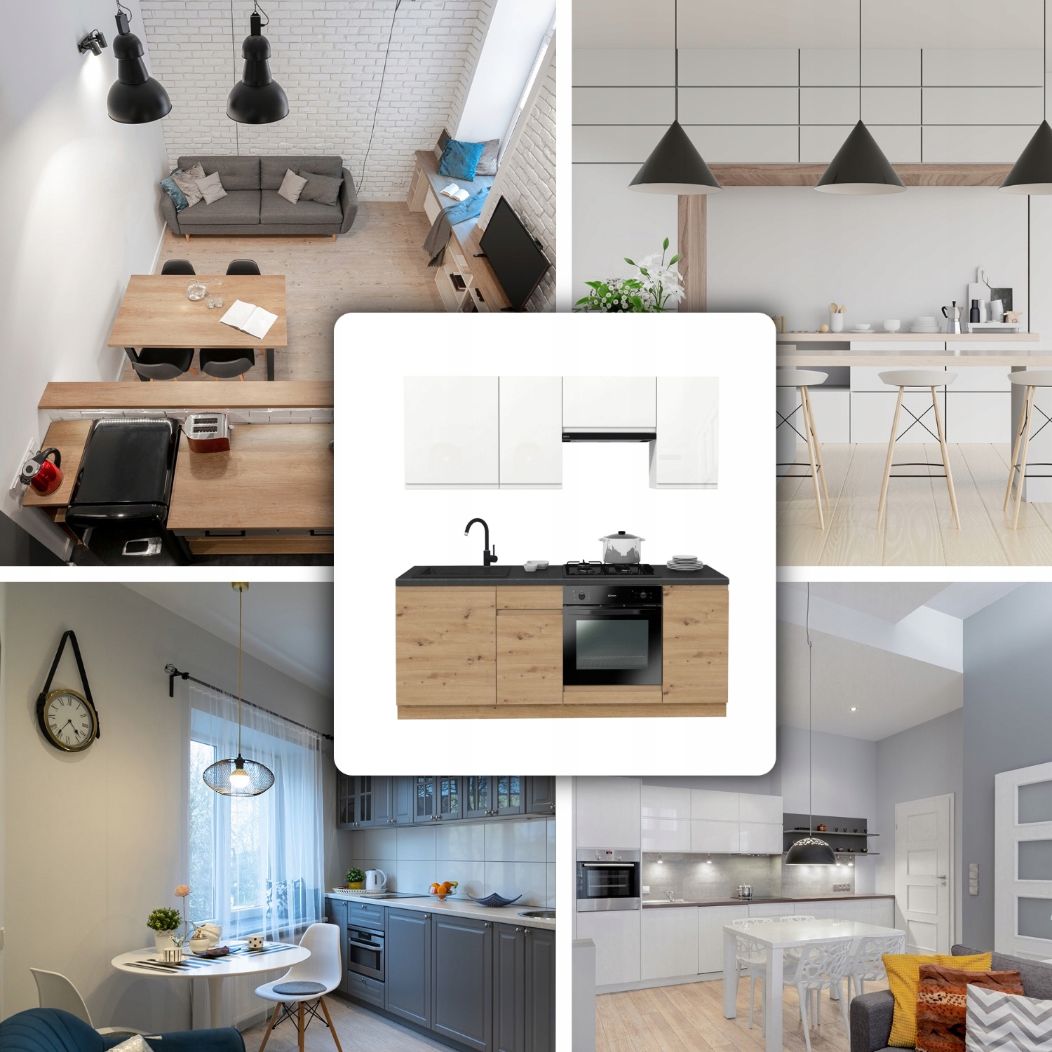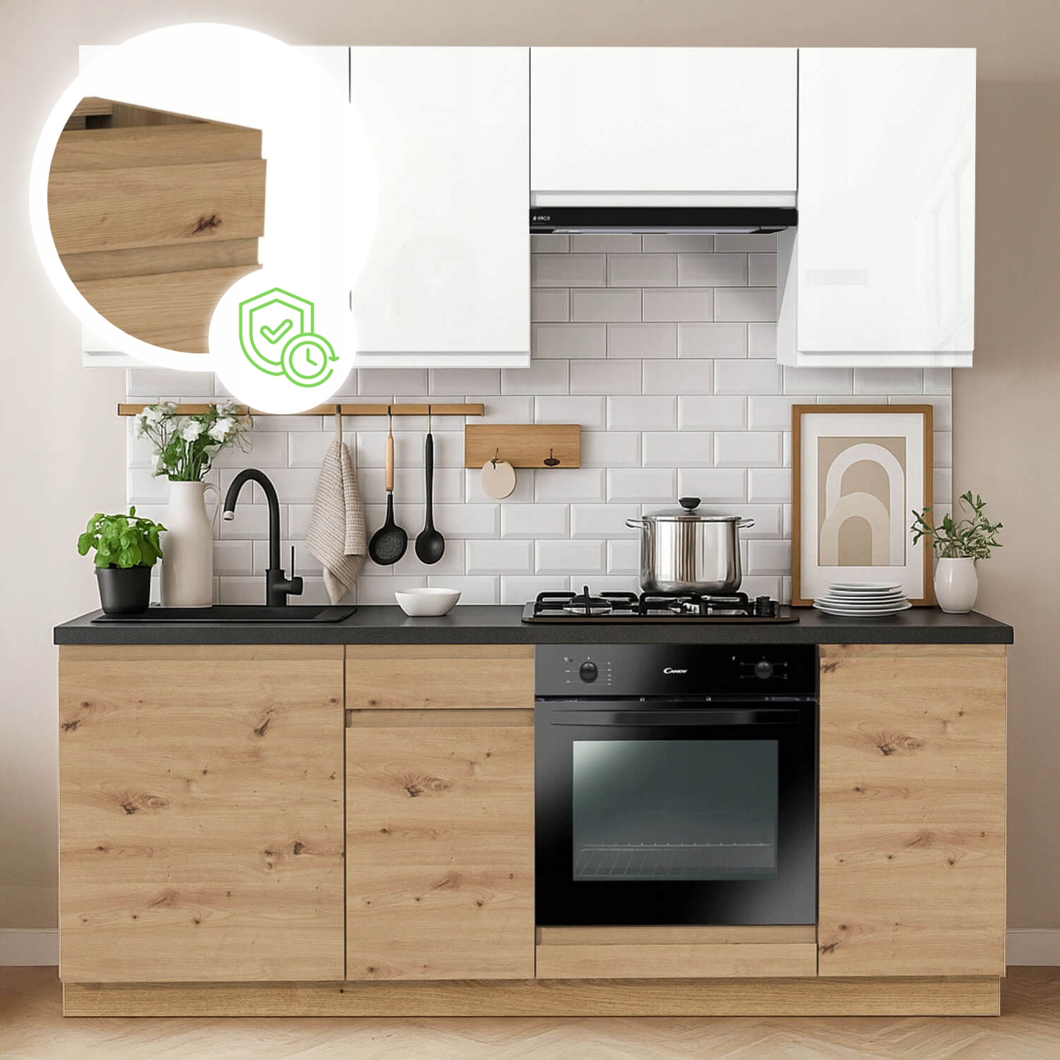 ✨ Meble Kuchenne Zestaw Mebli Na Wymiar Modułowe Dąb/Biały Połysk MODERN 200