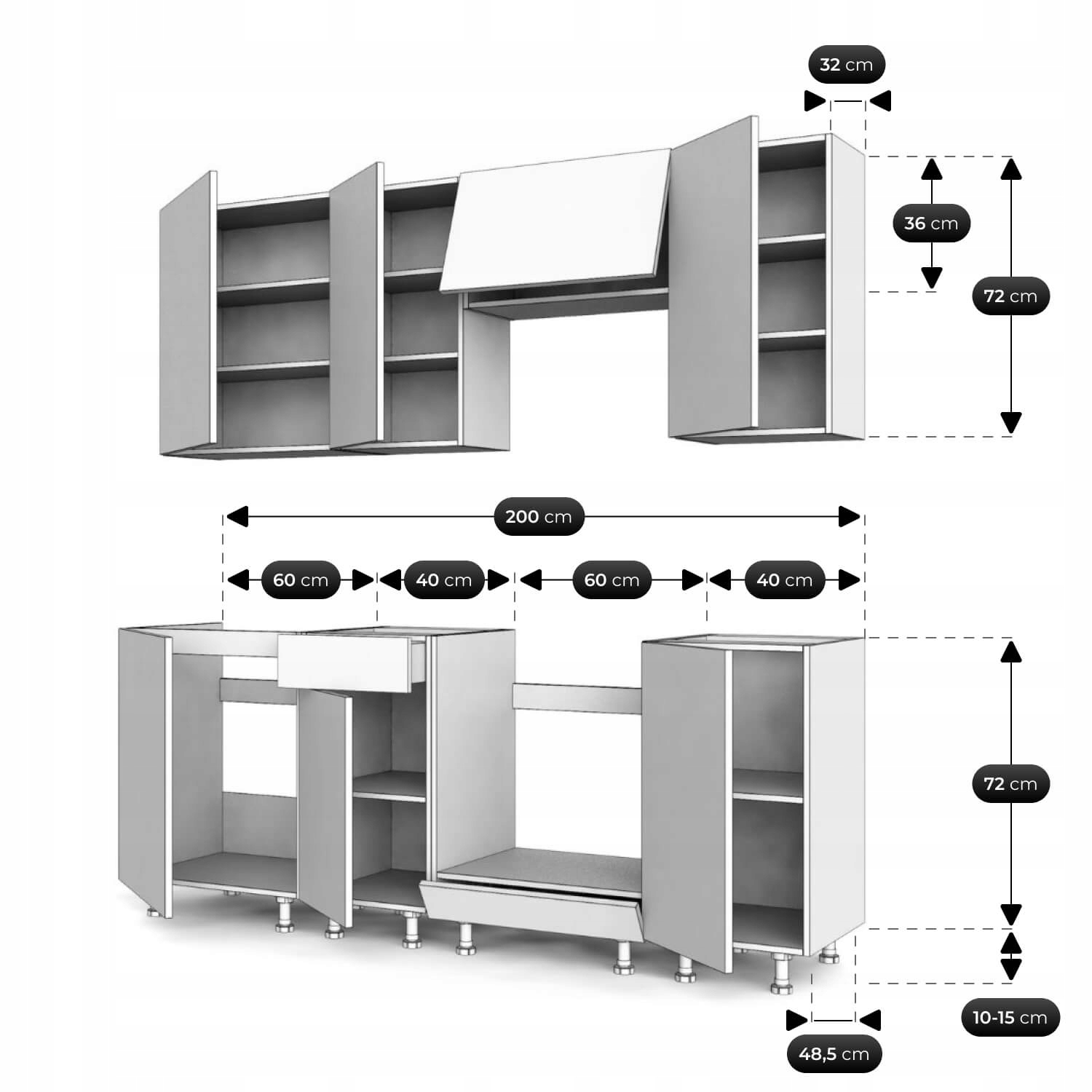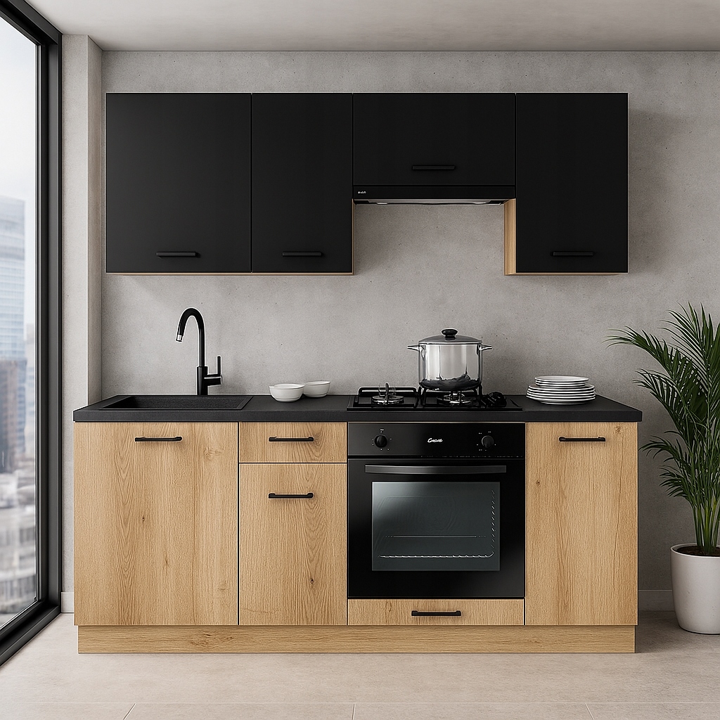 Kompaktowy wymiar – 200 cm szerokości idealny do małych kuchni, aneksów i mieszkań, w których liczy się każdy centymetr przestrzeni.