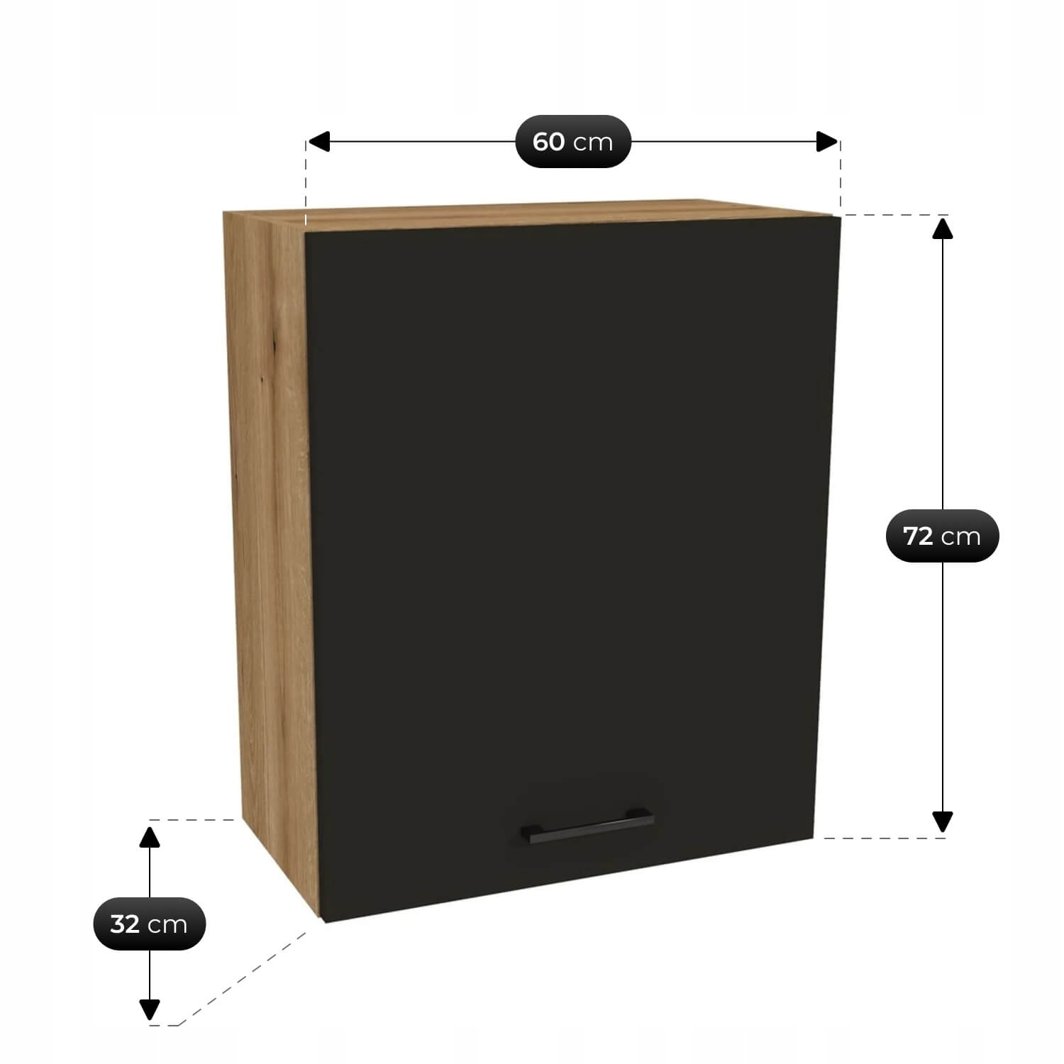 Szafki dolne i górne w praktycznym układzie – zapewniają wygodne przechowywanie naczyń, garnków i artykułów spożywczych w zasięgu ręki.